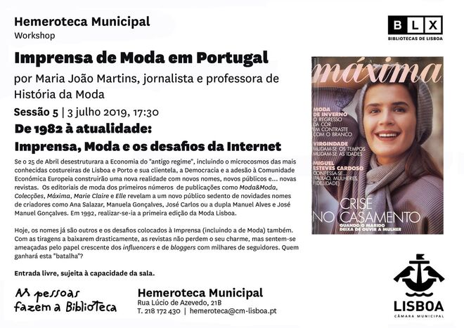 A história da moda narrada através do olhar único da jornalista e escritora Maria João Martins, em séculos de documentação impressa. Isto é o que se espera do workshop sobre a Imprensa de Moda em Portugal, que decorre a partir deste mês na Hemeroteca Municipal, em Lisboa.