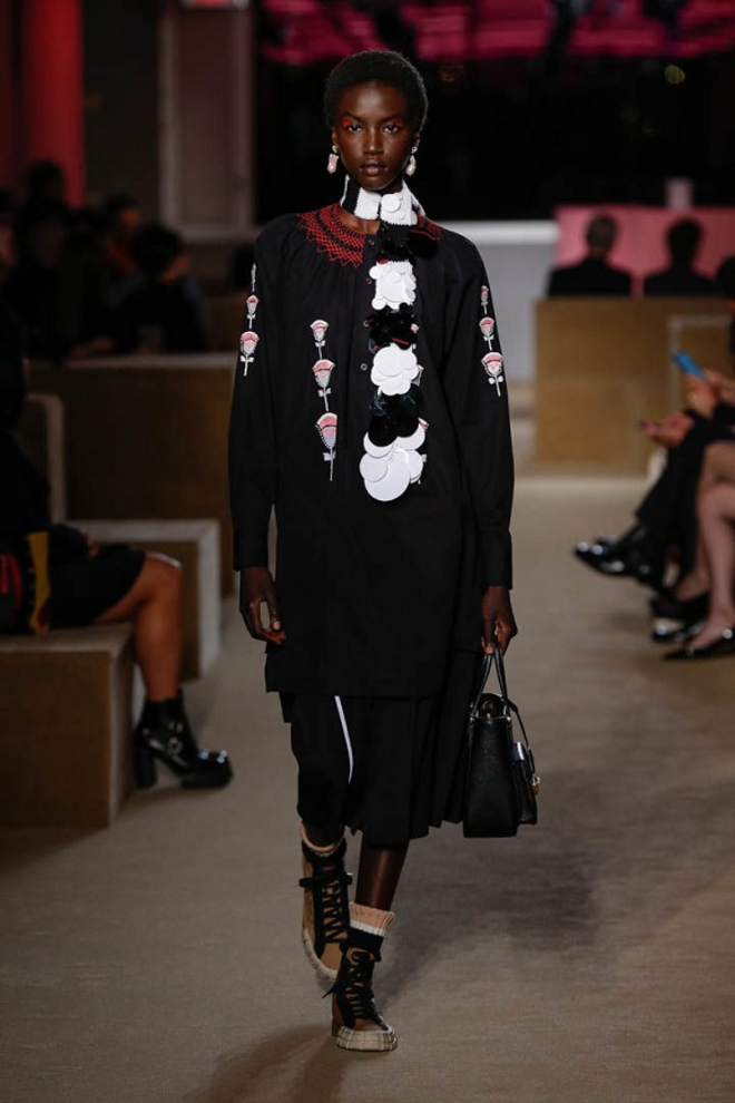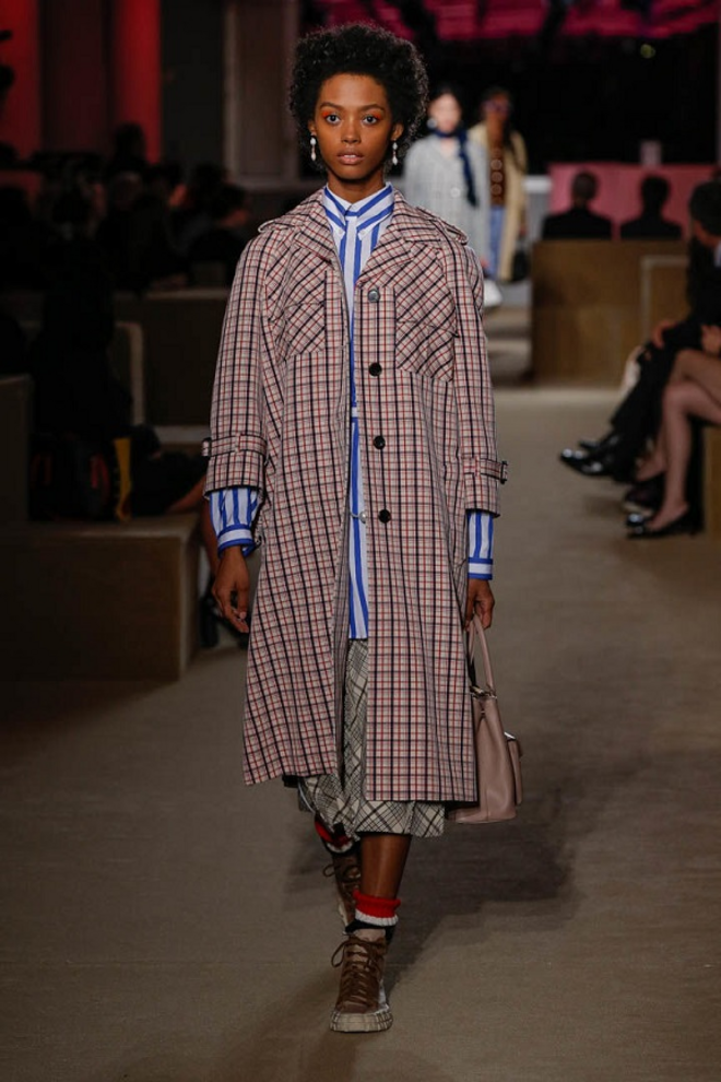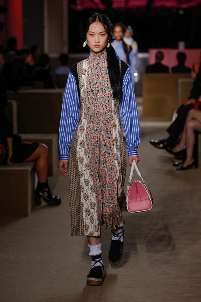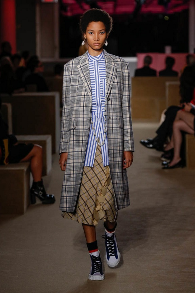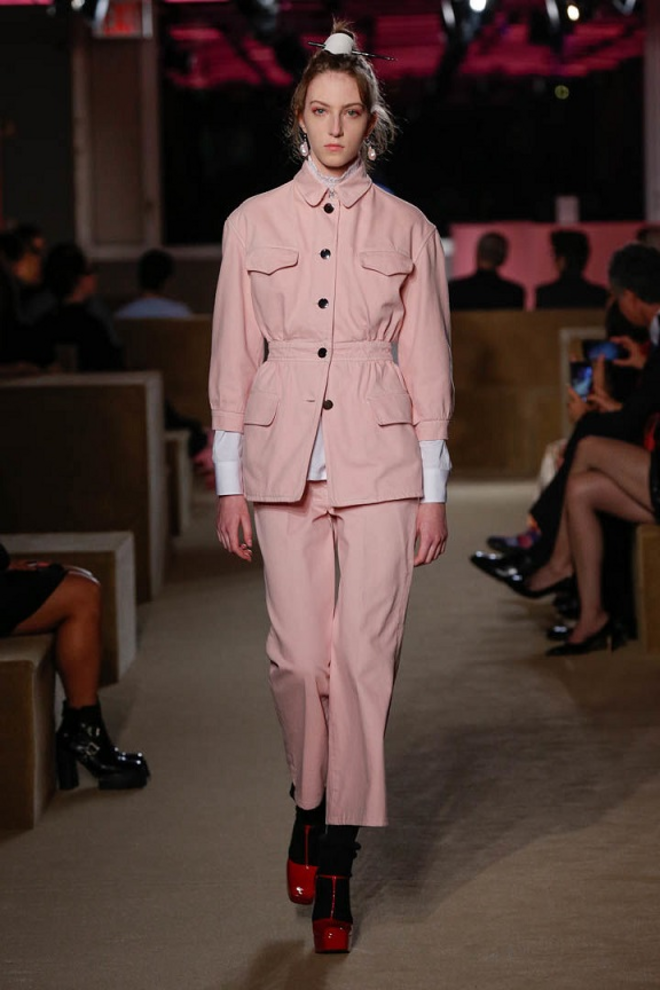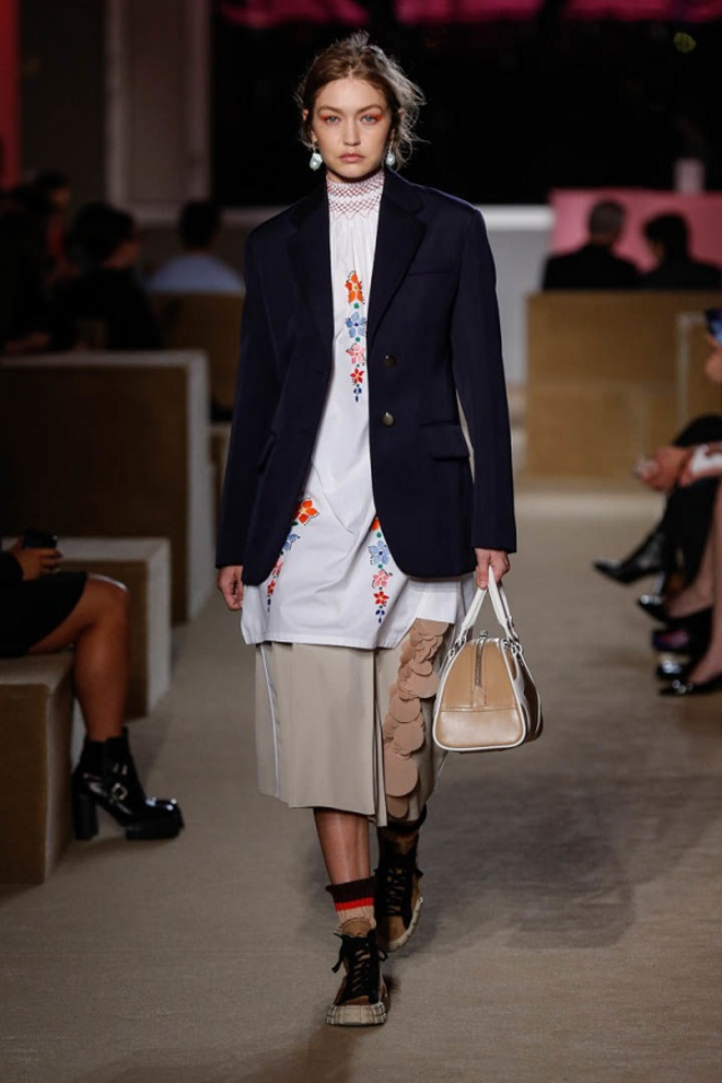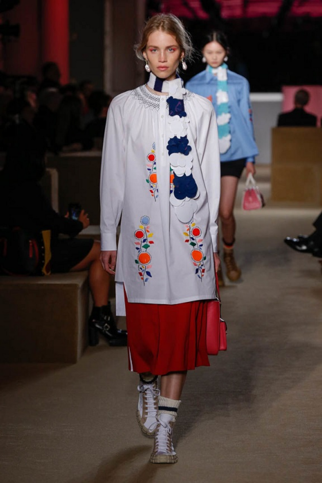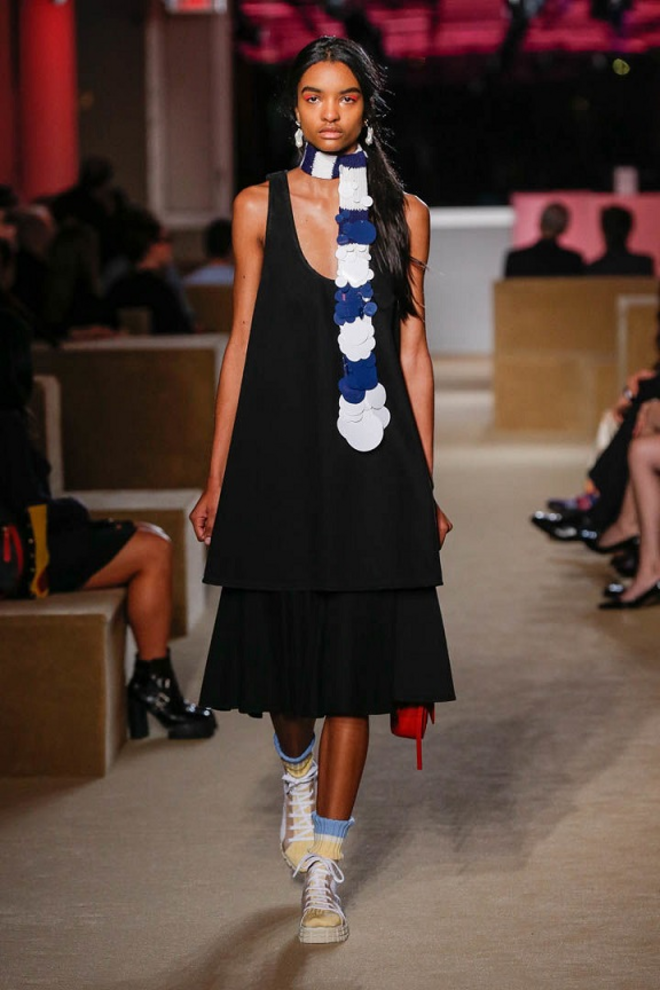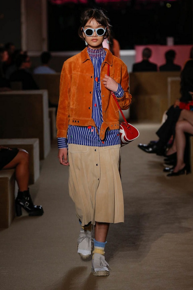Um desfile que quis ser o oposto do pretensioso, como explicou Miuccia Prada ao site da Vogue norte-americana, e onde vimos casacos compridos, blazers longos e direitos, t-shirts simples ou com riscas, peças de malha grossa que contrastaram com cortes direitos, peças compridas e coloridas. Um espectáculo onde sobressaiu a cor, alternando-se entre o pastel e os tons mais sóbrios e os longos e multicoloridos cachecóis. Desfilou ainda a reinvenção da mala Bowling, um êxito da marca italiana do início dos anos 2000.