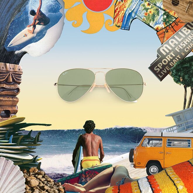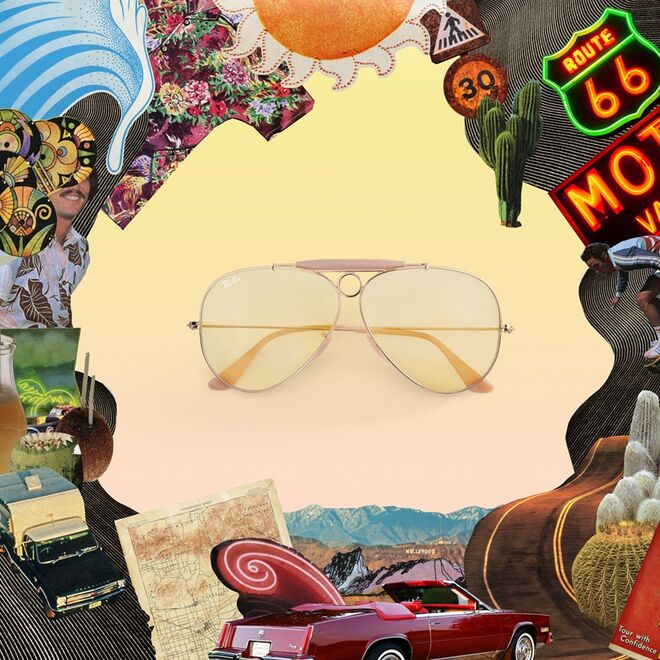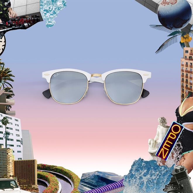 Para esta nova campanha, a Ray-Ban juntou-se ao artista Dewey Saunders, que criou várias colagens que dão vida ao mundo e à história de cada design. Os Aviator surgem num céu aventureiro, com nuvens e balões espelhados, os Wayfarer aparecem rodeados de motas e instrumentos musicais, o modelo Round apresenta-se entre espirais psicadélicas e flores e os Clubmaster, mais boémios, surgem num cenário jovem e citadino, com cocktails e piscinas.