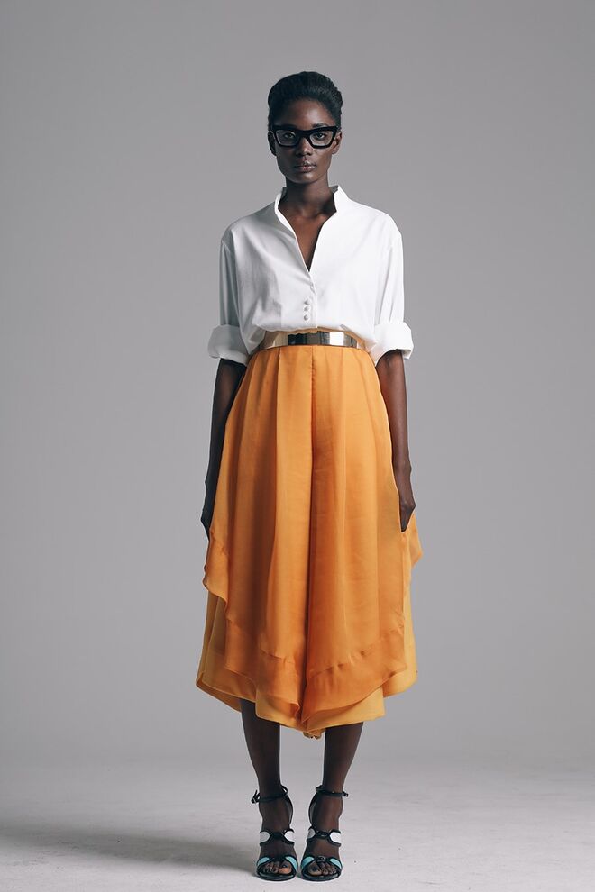 Padrões geométricos, silhuetas descontraídas e a predominância do amarelo fazem parte das apostas da designer para a próxima estação.