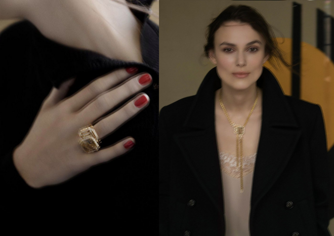 Para promover a sua coleção Gallery de joalharia, a Chanel partilhou recentemente uma série de fotografias da atriz Keira Knightley com algumas das peças da linha. A nova coleção inspira-se na corrente dourada das carteiras 2.55 e na geometria octogonal da Place Vendôme em Paris, onde se encontram algumas das boutiques mais exclusivas de alta-joalharia e o Hotel Ritz, onde Coco Chanel viveu durante vários anos.
