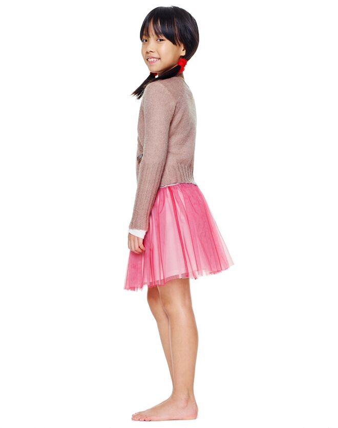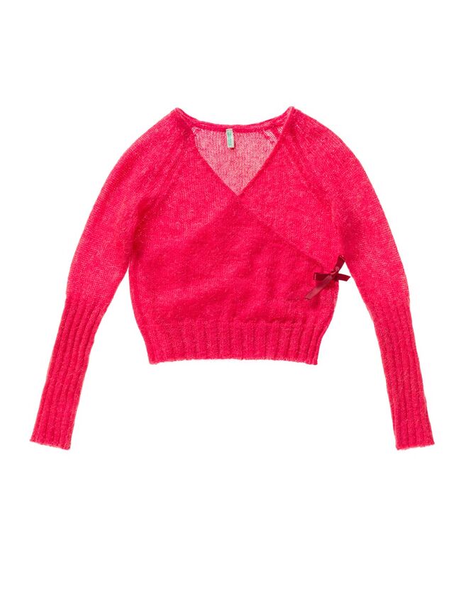 As malhas trabalhadas são fruto de um grande trabalho técnico que a Benetton exprime aqui no seu expoente máximo: sem costuras, com fechos laterais, malhas em ponto arroz e com aplicação de bordados. Um saber fazer que torna únicos os maxicoats de lã em ponto arroz e com aplicação de bordados, envolventes como um abraço, ou o delicioso cache-coeur em cachemira pura com mangas tubulares, apertado na cintura com fita de seda, minissaias com efeito tutù, camisolas loose, de toque cocoon, vestidos acima do joelho, lindos xailes de lã com aplicação de bordados e polainas suave e quentes, de malha canelada. Para as meninas: minissaias de efeito tutù, t- shits românticas, e luvas sem dedos macias e quentes