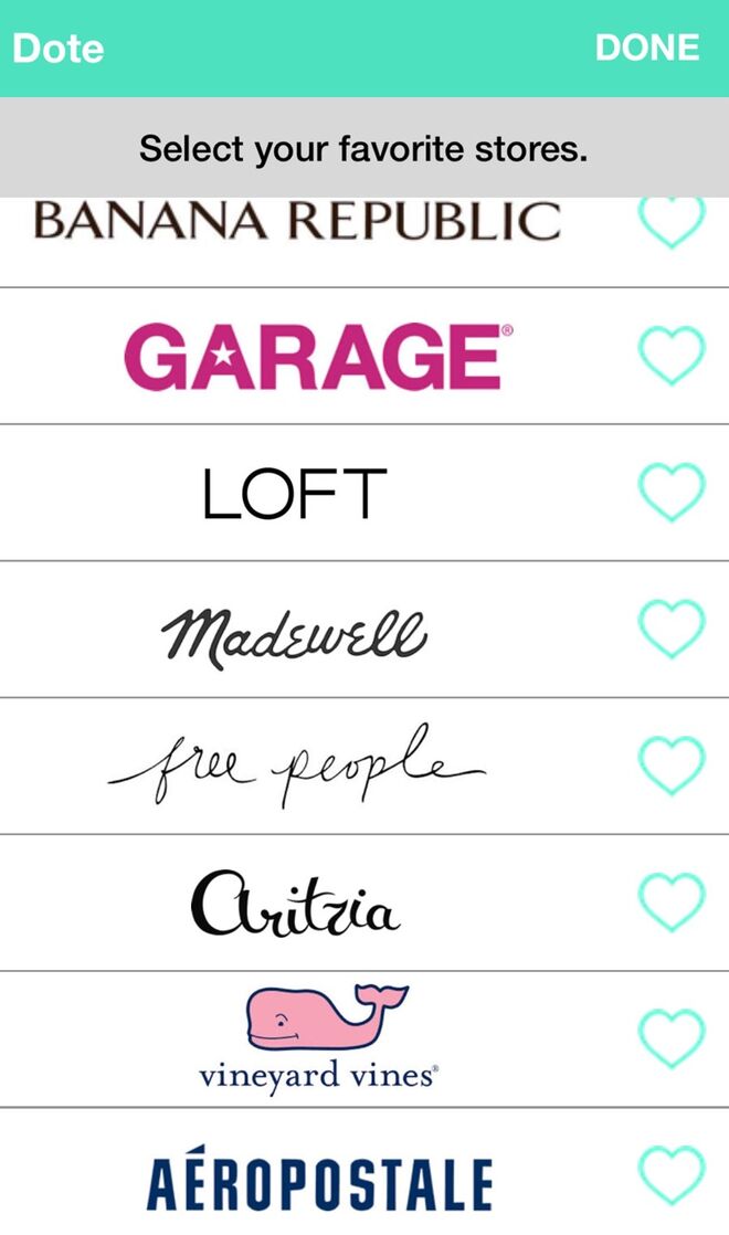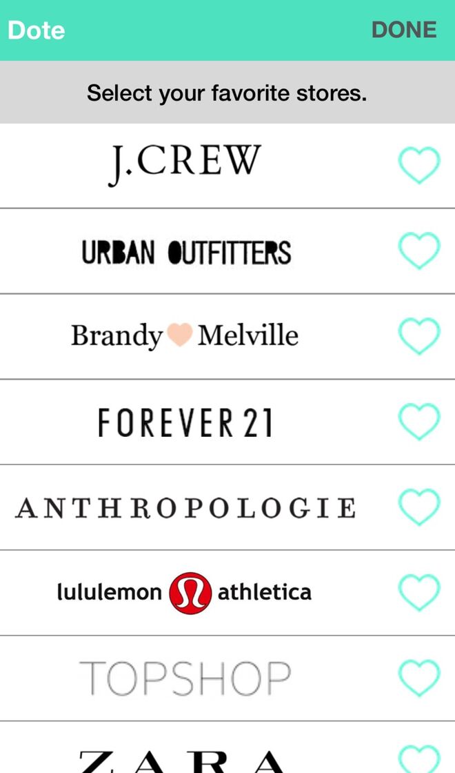 Uma das coisas que a distingue das restantes aplicações de compras online é que ela pede aos seus novos utilizadores que indiquem as suas marcas e lojas favoritas. Nessa lista, já constam mais de 140 nomes, entre eles os da Nike, Adidas, H&M, Zara, Uniqlo, Levi’s, Hot Topic, Mango, Gap, Under Armour, Steve Madden e Michael Kors.
