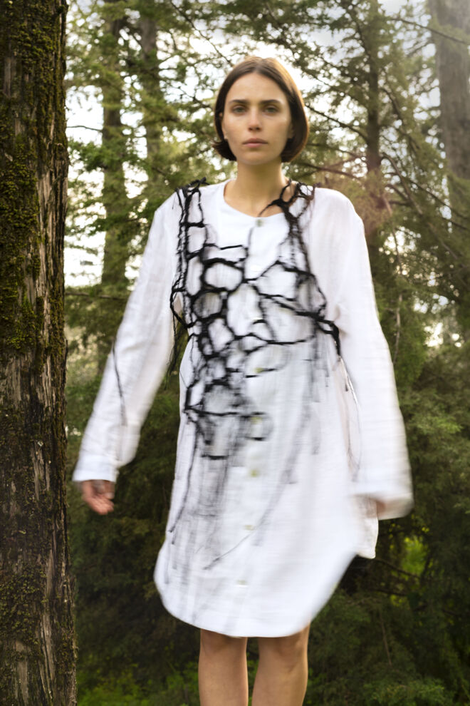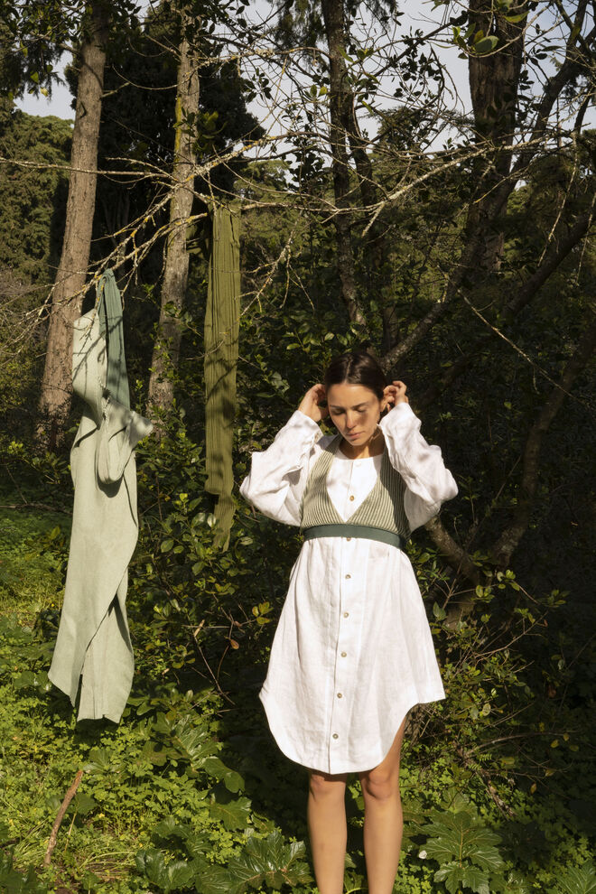 A coleção ganha vida em diversos tons de verde e texturas que nos lembram a natureza, destacando-se, por exemplo, um chapéu da mesma cor que demorou três semanas a tecer pelo designer, uma peça única criada para durar uma vida. É de lembrar também que a última coleção que Dickens apresentou na edição mais recente da ModaLisboa introduziu-nos a uma vontade de mudar a consciência dos dois principais pólos na indústria da moda: os criadores e os consumidores. "Temos de mudar a maneira como compramos, como gastamos, desperdiçamos" reflecte. "Respeitar o mundo à nossa volta e acima de tudo, garanti um futuro mais sustentável".