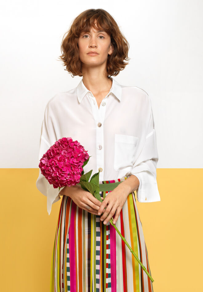 Para a primavera-verão, a Malìparmi apostou em tecidos leves e assimétricos, presentes ideais pata o Dia da Mãe.