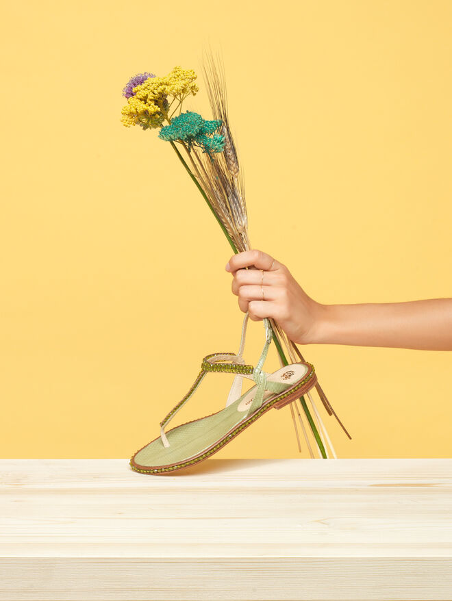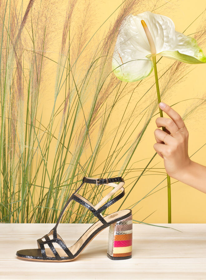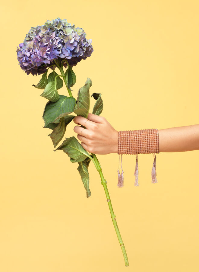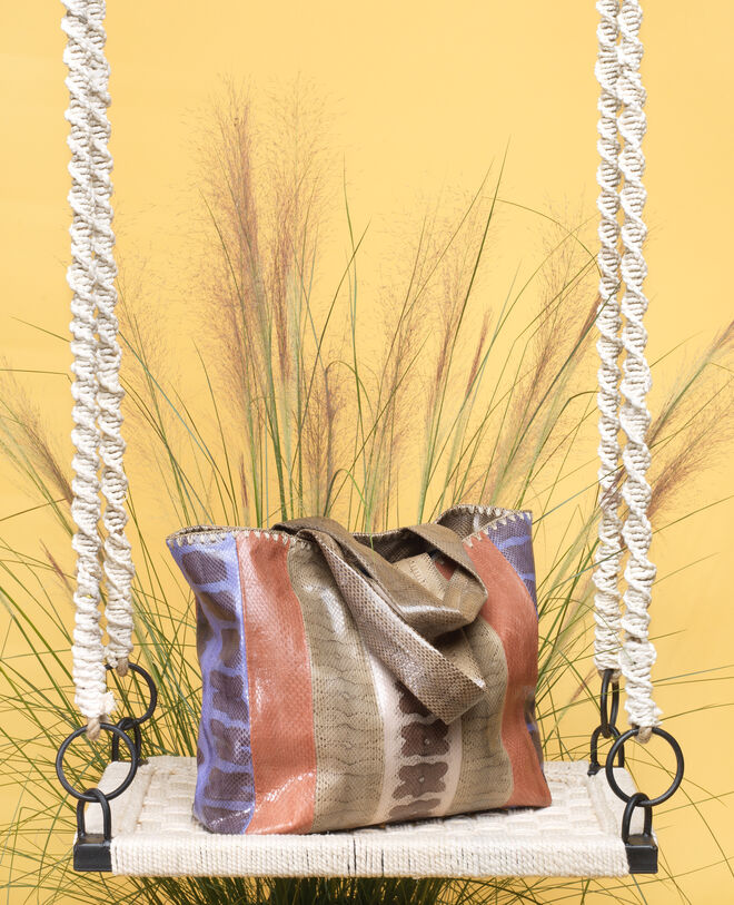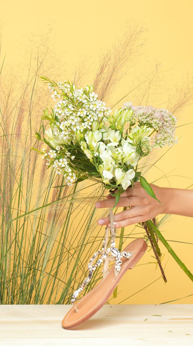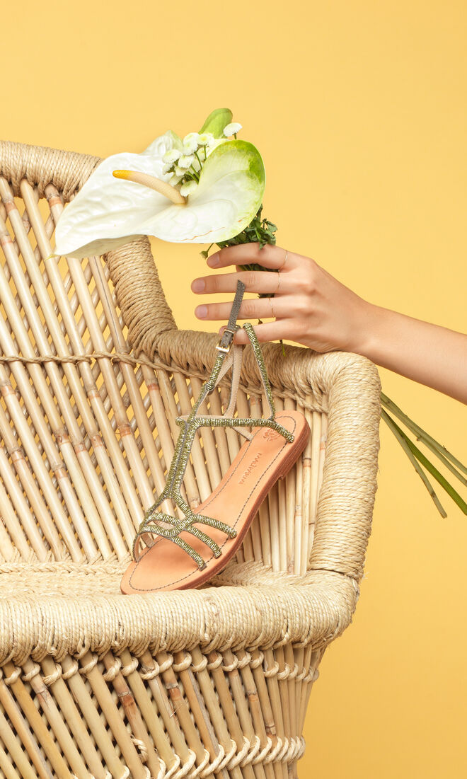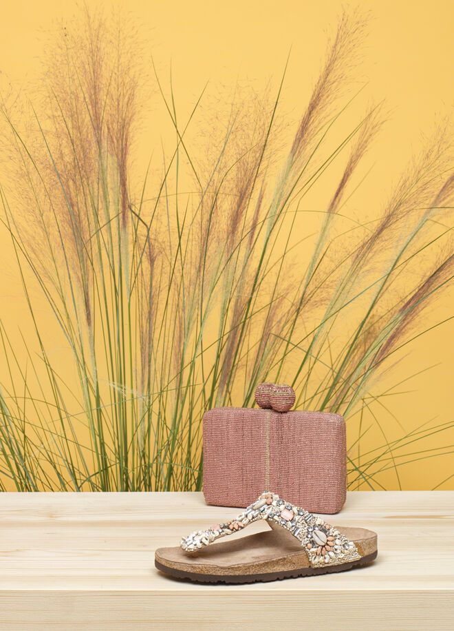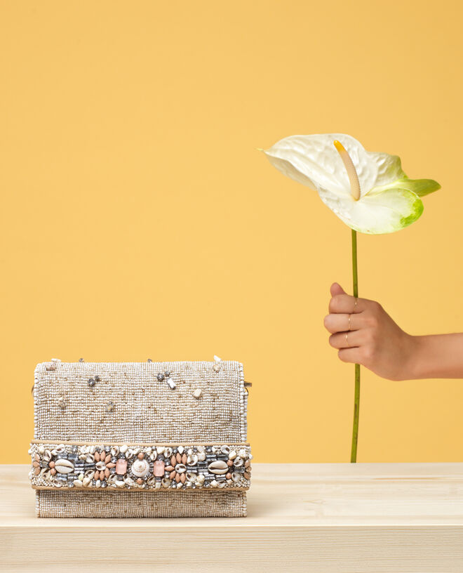 As influências boémias estão também presentes nas carteiras, com bordados e aplicações, e nos sapatos, através dos entrelaçados em pele.