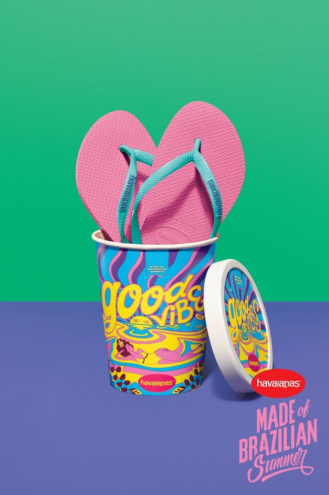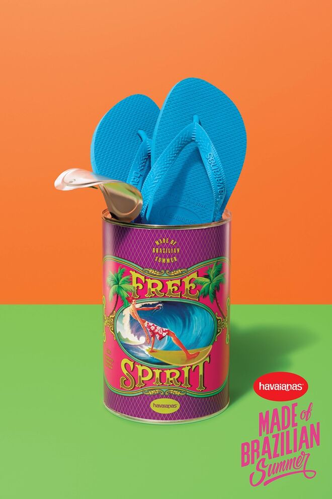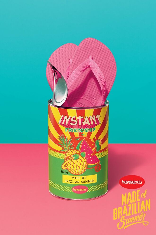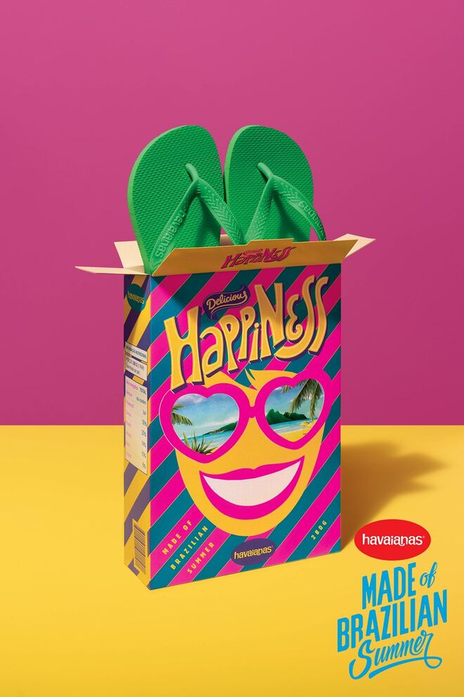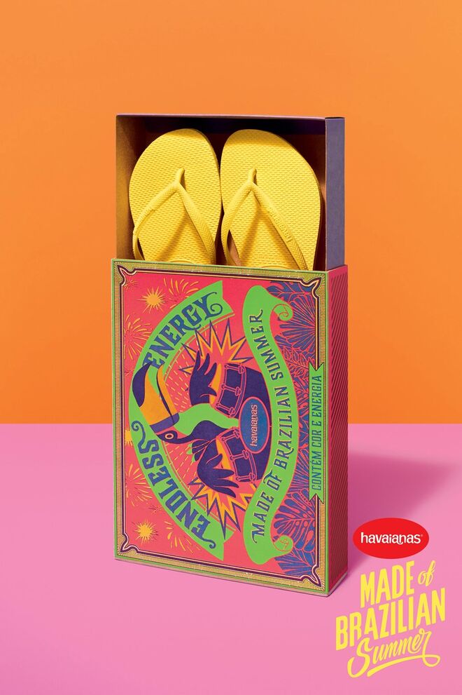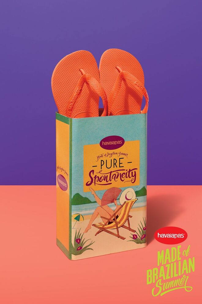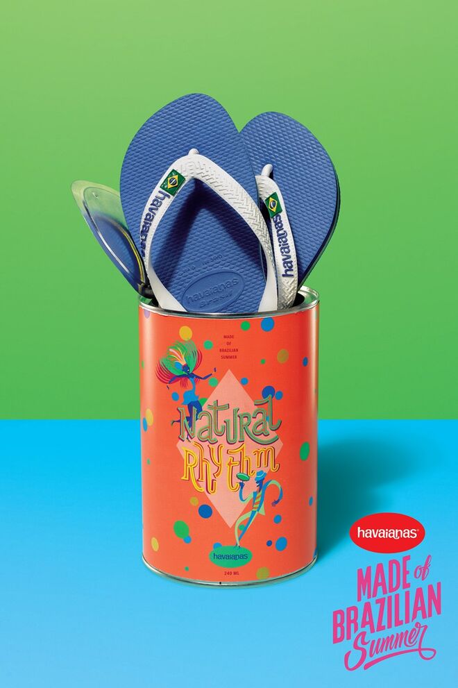 Este ano, foram por isso criados sete novos modelos de Havaianas inspirados num determinado conceito. O da Amizade surge representado com uma embalagem de sopa instantânea; o da Energia e Cor através de uma caixa de fósforos como símbolo; o da Música e Dança com um pacote de sumo fresco e natural; o da Espontaneidade com uma lata de azeite (ingrediente simples, sem sombra de aditivos); o das Boas Vibrações com um balde de gelado (capaz de animar até a alma mais cinzenta); o da Alegria com uma caixa de cereais que ilustra bem o entusiasmo e otimismo contagiante; e por fim o da Luz e Liberdade através de uma lata de sardinhas.