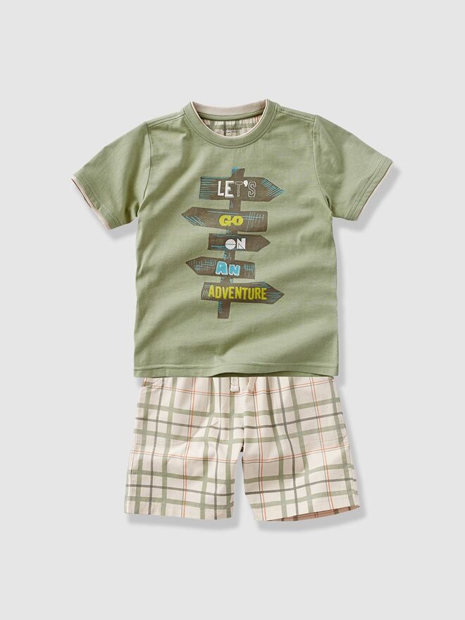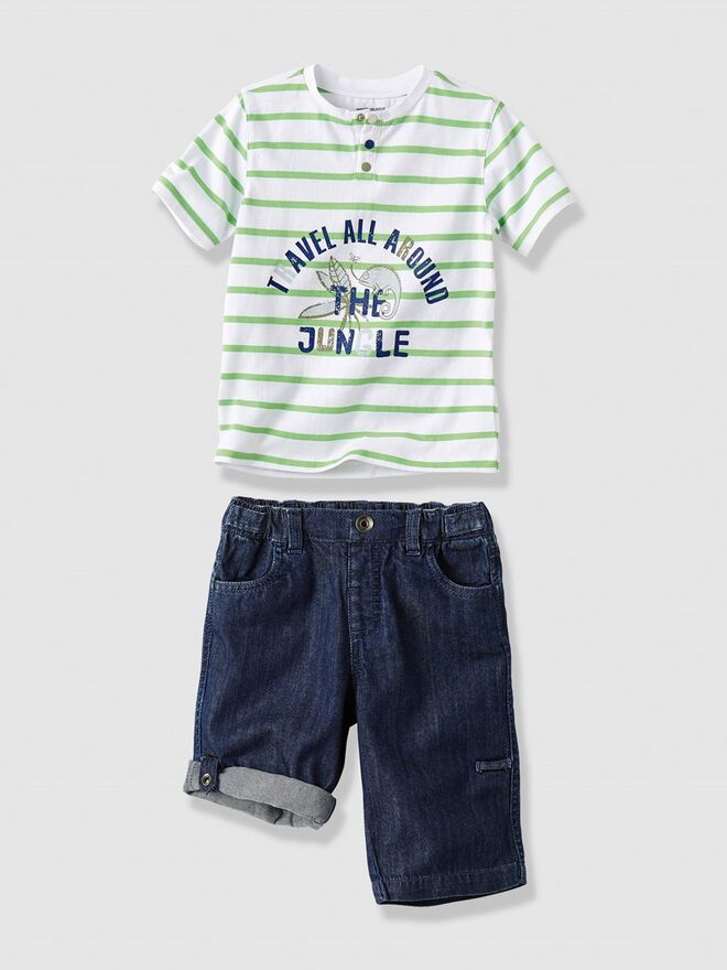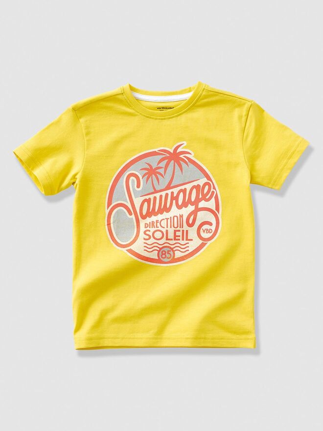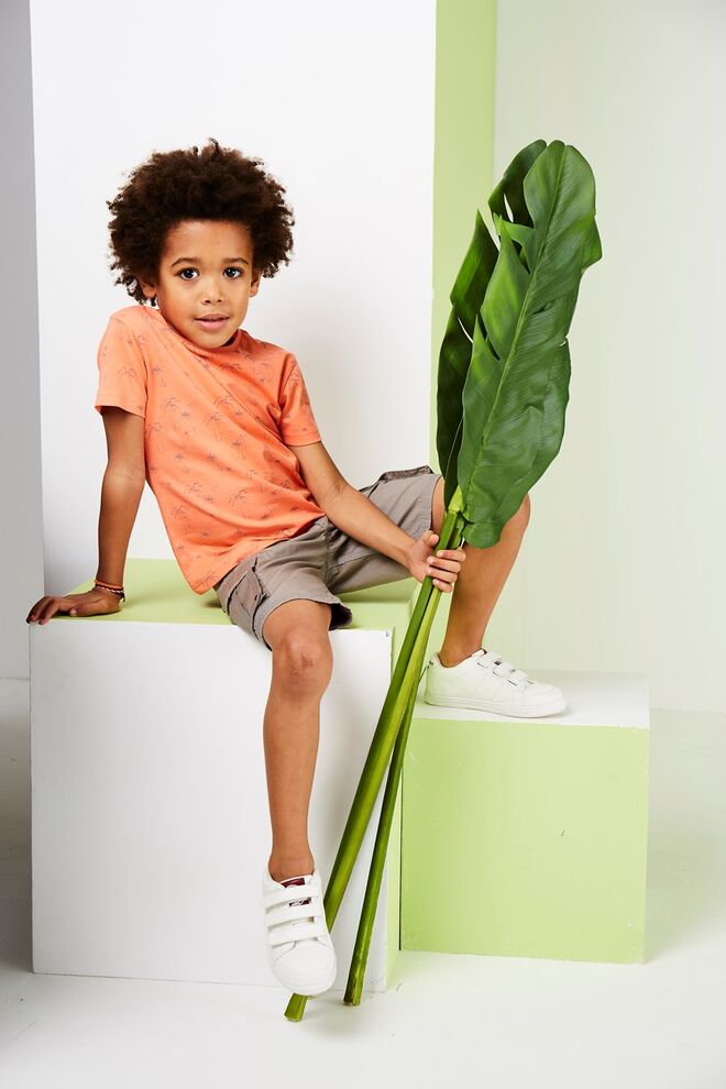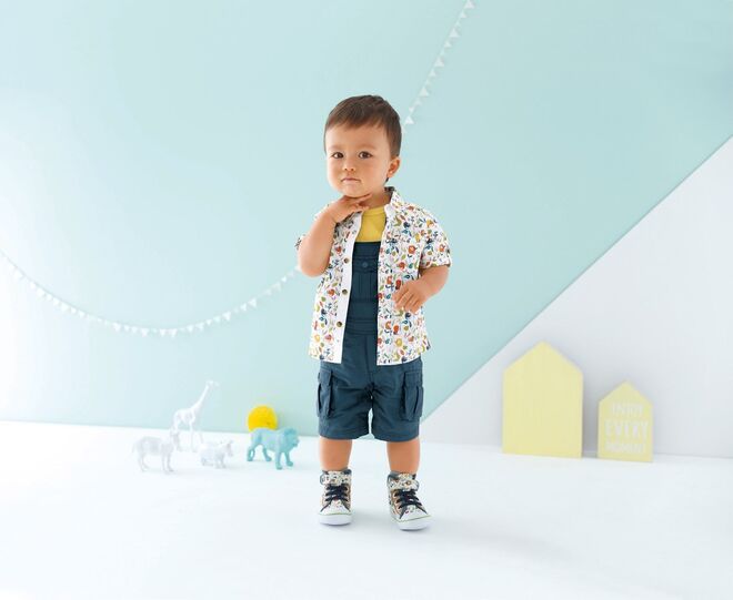 A vertbaudet propõe peças cheias de cores fortes e estampados criativos, como vegetações e flores nos calções e camisas, um pouco a fazer lembrar as selvas do pacífico. Um convite para que os mais pequenos se divirtam entre aventuras à semelhança da personagem Mowgli da Disney.