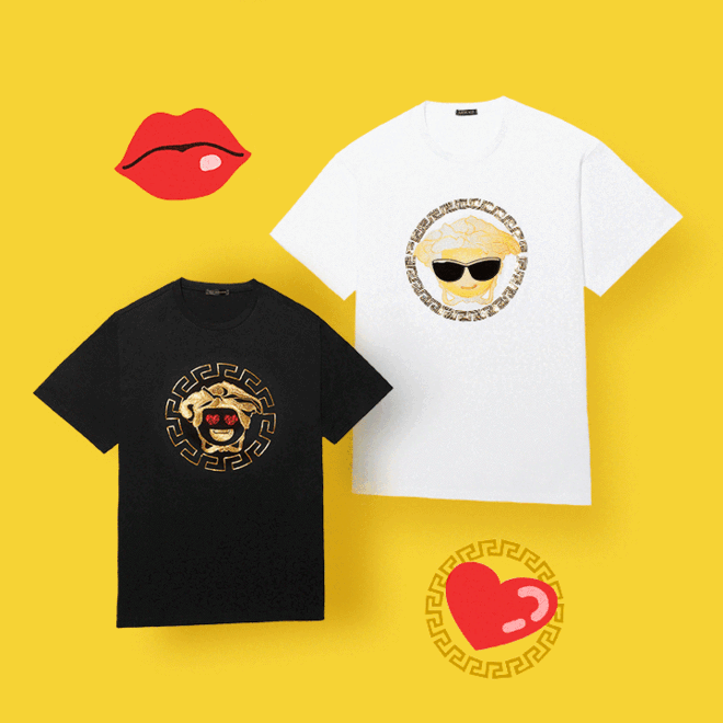 A Versace acaba de lançar a sua própria aplicação para smartphone com emojis e uma coleção cápsula de T-shirts sob o título #VersaceSharesLove. Esta foi a forma divertida que a marca arranjou para celebrar o Dia de São Valentim.