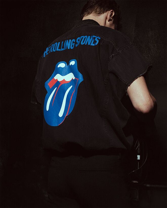 A icónica imagem da língua de fora protagoniza t-shirts simples, para ele e para ela, nos tons azul e vermelho. Para além das t-shirts, a coleção é ainda composta por casacos pretos e minimalistas, e botins edgy, ao estilo rock & roll. Veja-a acima.