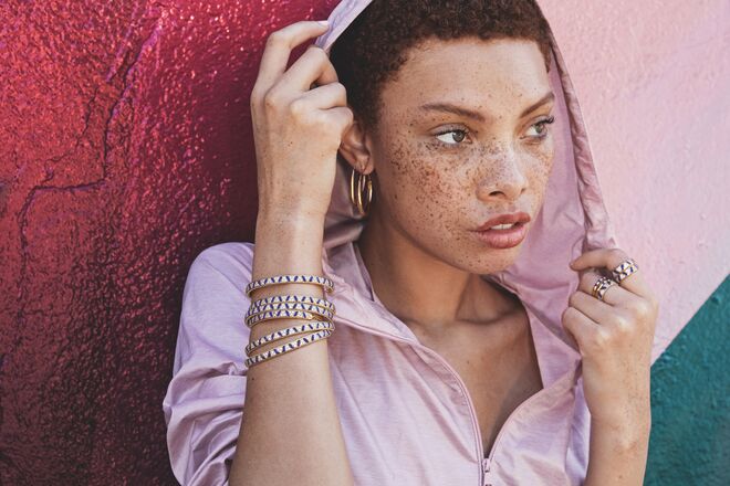 Composta por um brinco, uma bangle com fecho deslizante de edição limitada, e cinco anéis que podem ser usados em conjunto ou em separado, a partir de €49.