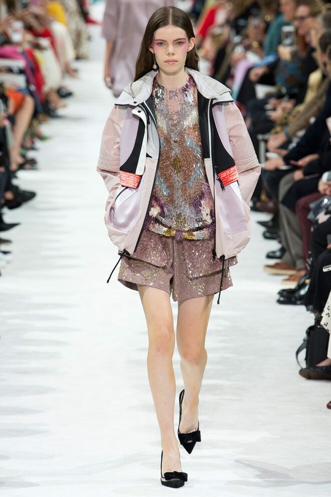 Nicolas Ghesquière trouxe à passerelle referências históricas do século XVIII, mas reinterpretou-as, cruzando-as com influências do sportswear. O resultado? Casacos estruturados com brocados metalizados conjugados com calções desportivos em seda e ténis. A coleção da Louis Vuitton recria a harmonia perfeita entre dois conceitos opostos.