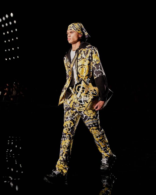 O desfile aconteceu no mesmo dia em que o designer e fundador da marca, Gianni Versace, assassinado em 1997, celebraria os seus 72 anos.