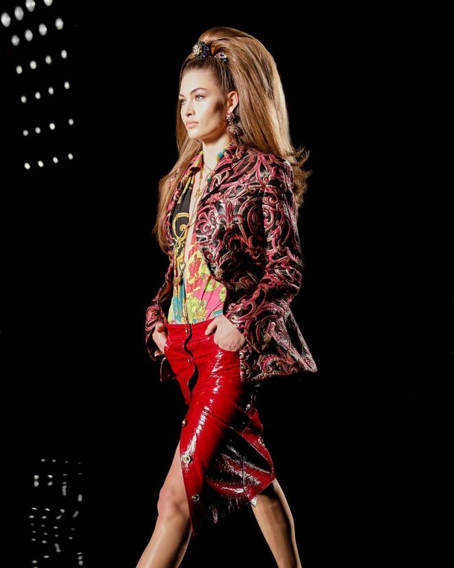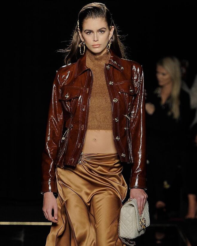 Emily Ratajkowski, Gigi Hadid, Hailey Bieber, Imaan Hammam e Kaia Gerber estiveram entre os nomes que desfilaram para a Versace – modelos que nasceram nos anos 90 e que aqui recuperaram algumas das maiores referências de moda daquela década.