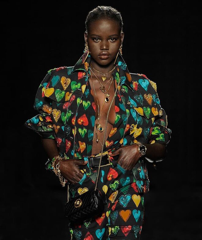 Também dois dos modelos mais icónicos da marca desfilaram com um novo visual: foram eles o vestido que Jennifer Lopez levou à cerimónia dos Grammys em 2000 e o emblemático vestido de alfinetes usado por Elizabeth Hurley em 1994.
