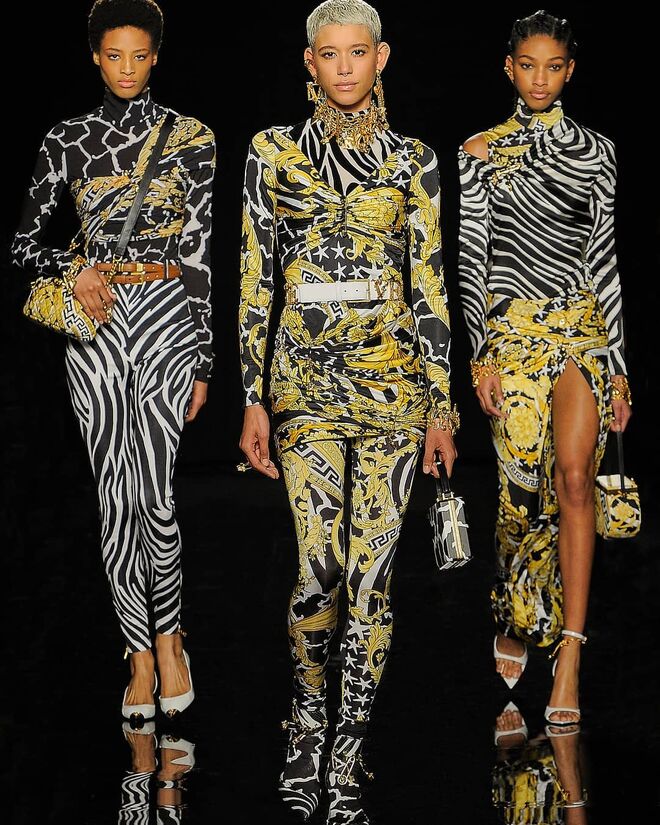 Animal print, vestidos justos, joias oversized, logos em evidência, misturas de padrões e cores foram algumas das tendências que a marca recuperou. O desfile (o primeiro a ser realizado desde que a marca foi comprada pela Michael Kors) aconteceu em Nova Iorque, num tributo à moda da cidade, uma ideia de Donatella Versace. Na primeira fila, vimos Kim Kardashian, Blake Lively e Sara Sampaio, entre outras, que vestiram alguns dos clássicos da marca italiana.