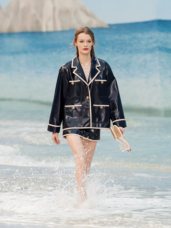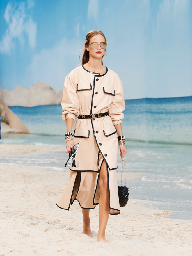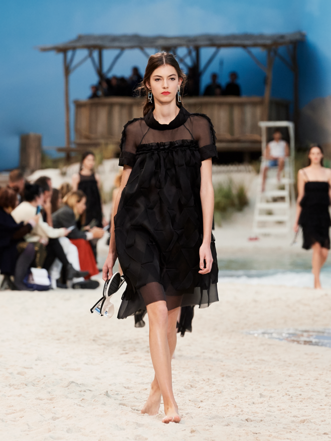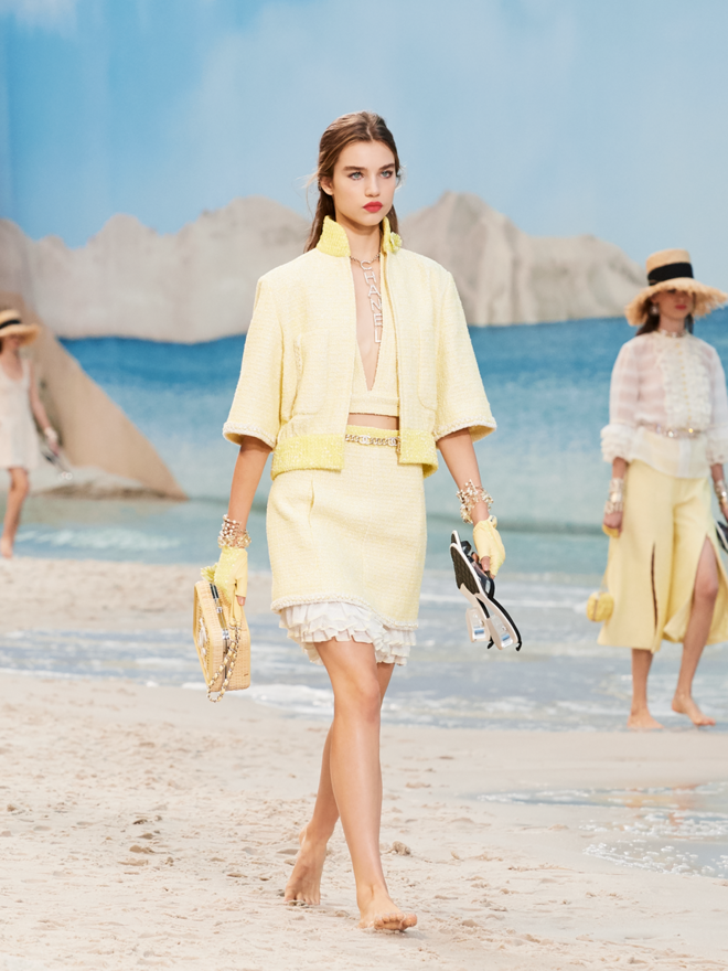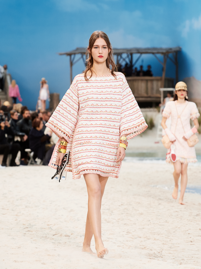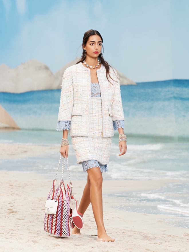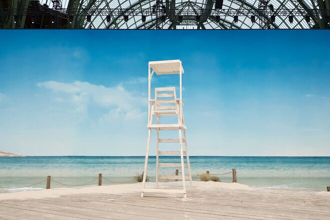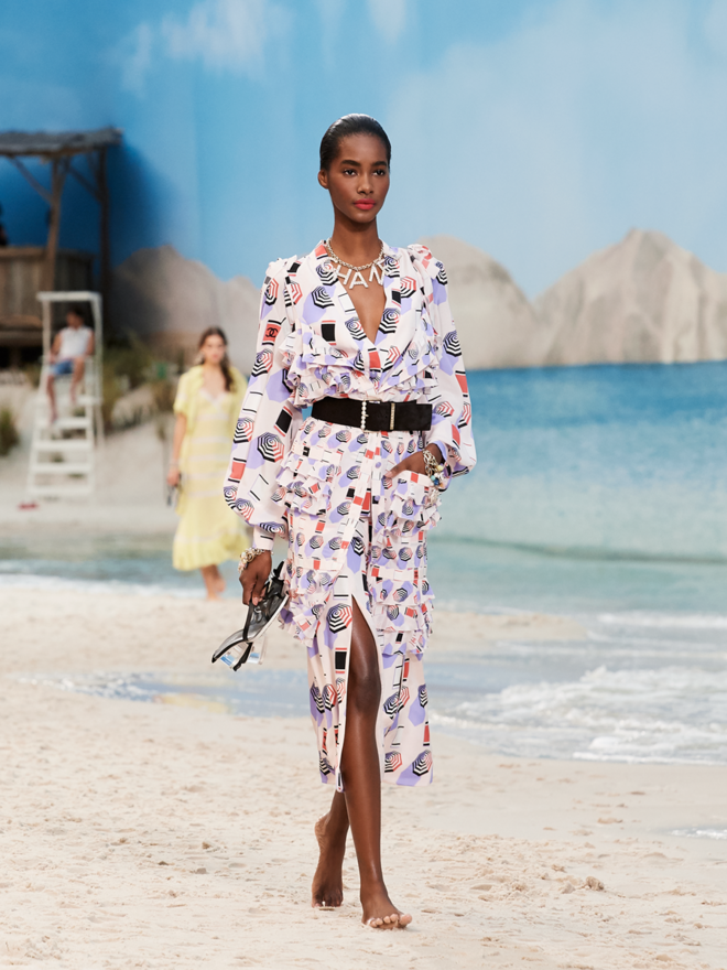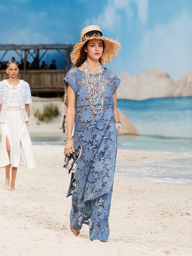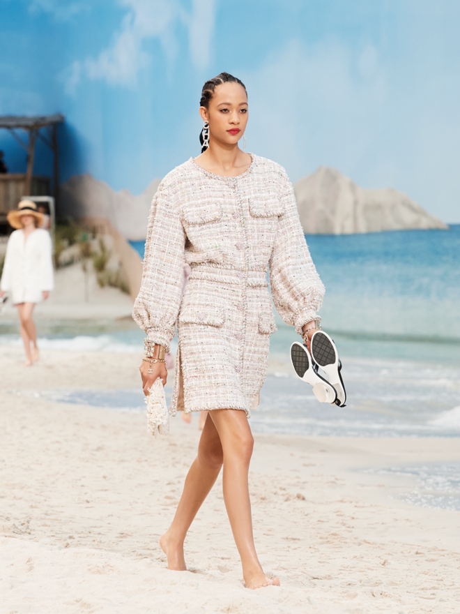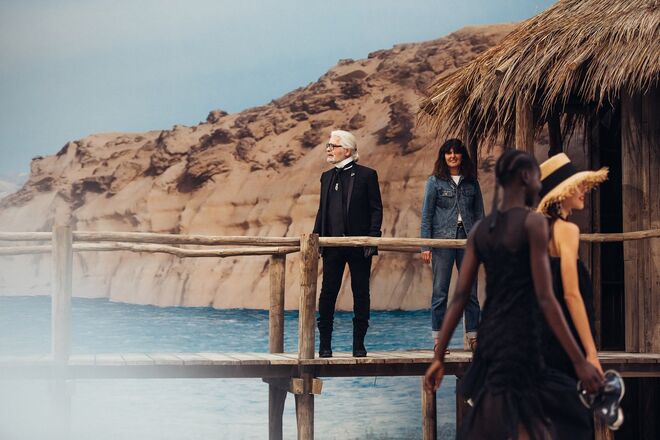 Céu azul, areia branca, ondas do mar. Poderia ser uma praia no sul da França, mas foi o cenário que Karl Lagerfeld, diretor criativo da Chanel, criou no Grand Palais, em Paris, para o desfile da coleção primavera/verão 2019 da maison.