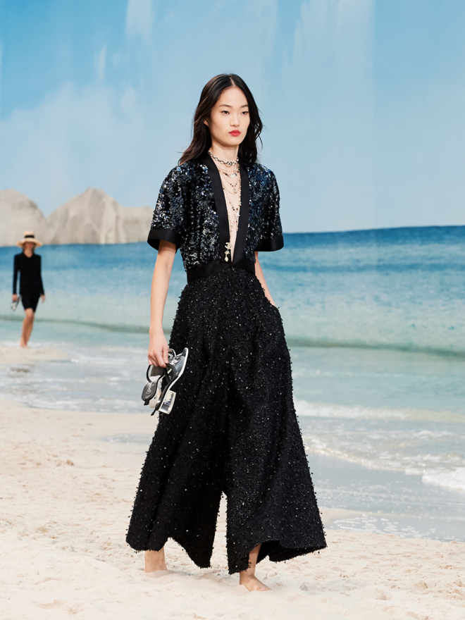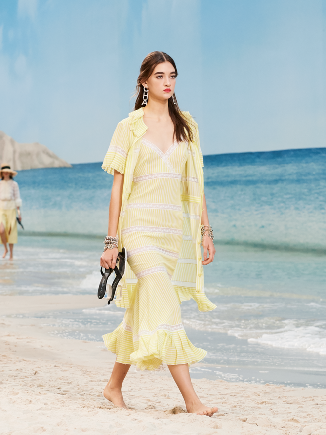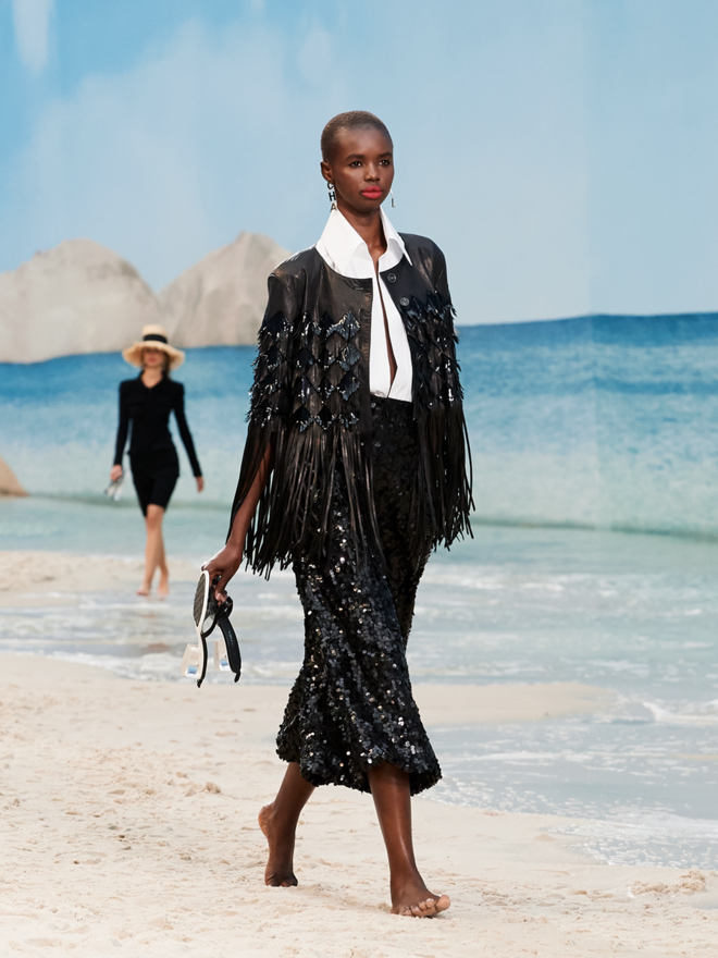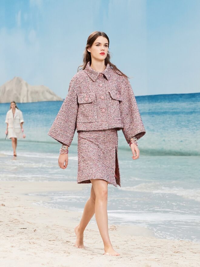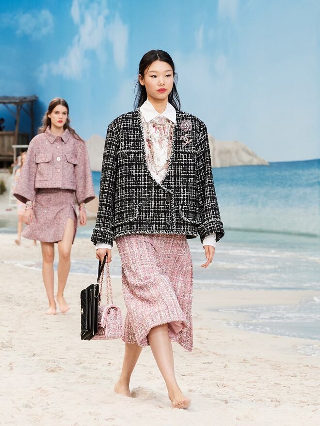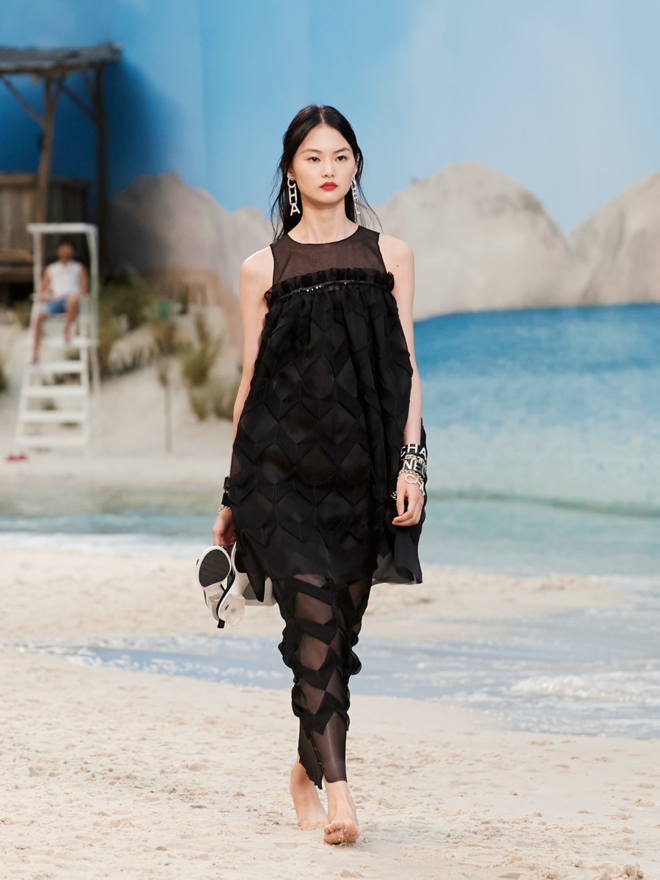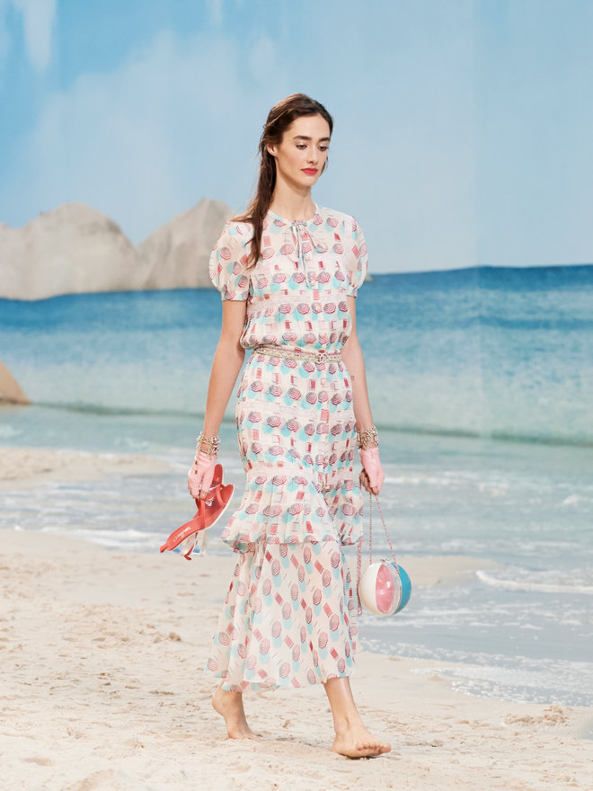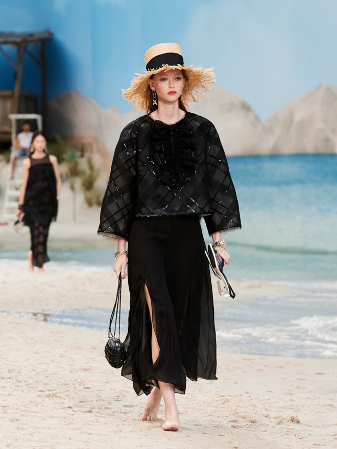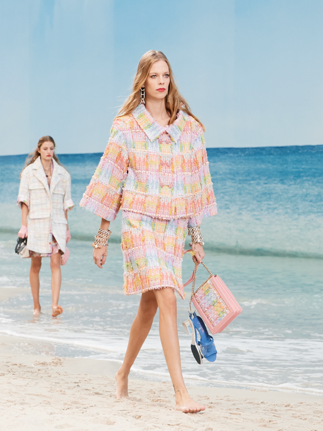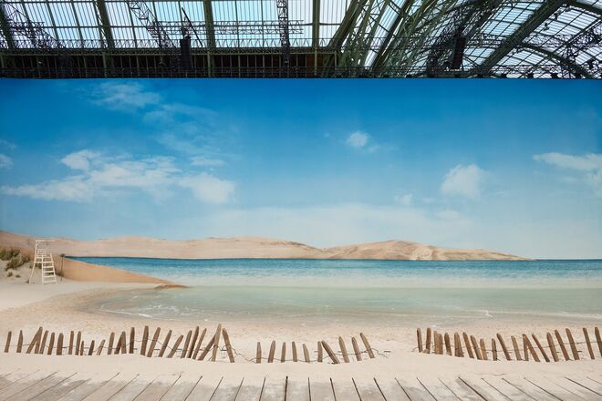 Céu azul, areia branca, ondas do mar. Poderia ser uma praia no sul da França, mas foi o cenário que Karl Lagerfeld, diretor criativo da Chanel, criou no Grand Palais, em Paris, para o desfile da coleção primavera/verão 2019 da maison.