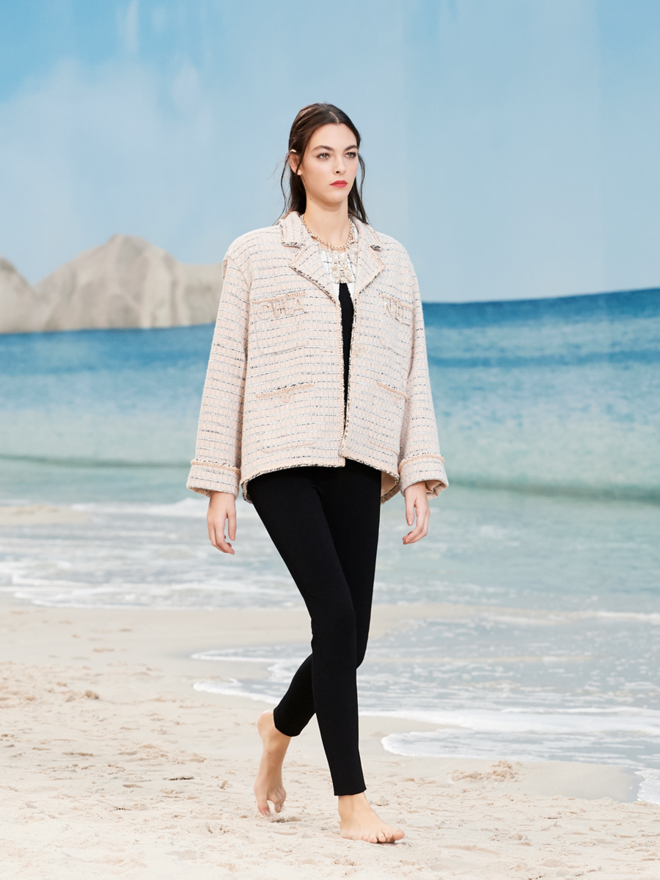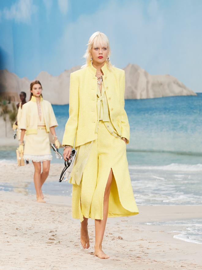 O espírito foi de liberdade e, claro, sofisticação, tal como a Chanel já nos habituou. Os tecidos variaram entre o clássico tweed e o chiffon, passando pelo crepe, as rendas, a sarja de algodão ou a ganga. Já a paleta de cores incluiu tons tão apetecíveis como o amarelo vivo, o bege bronzeado ou o menta.
