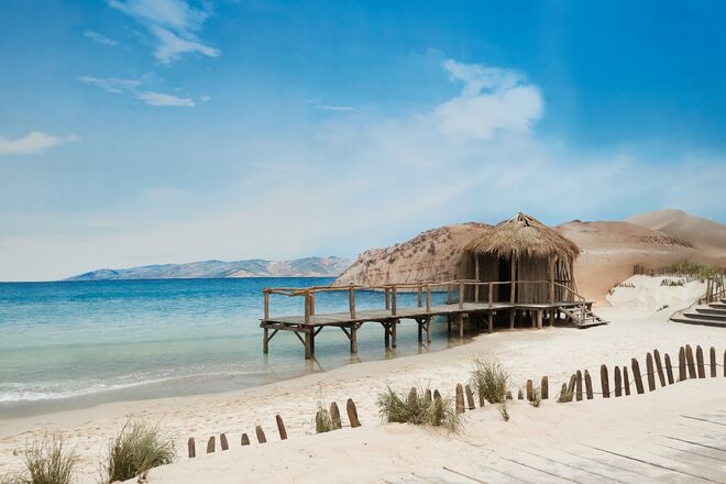 O surpreendente cenário teve direito a areia, céu azul, mar, ondas e até um nadador salvador.