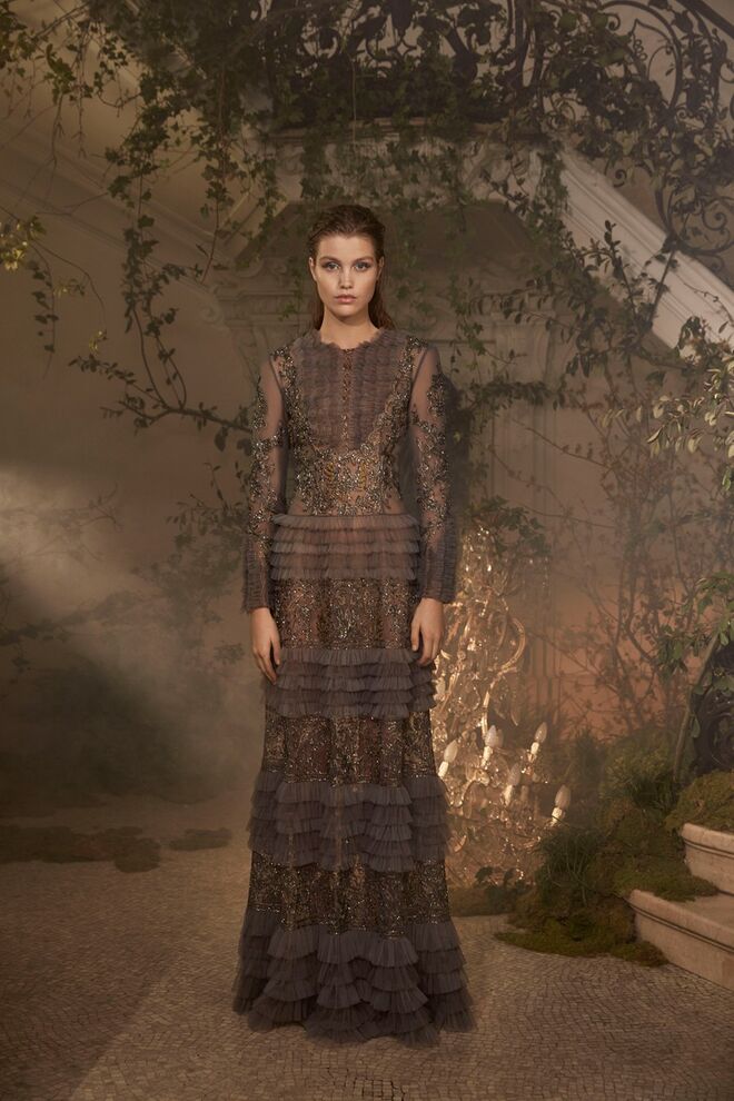 O criador transportou-nos para a Paris dos eufóricos anos 20 - jazz, felicidade e a esperança do pós-guerra a borbulhar. Tão sofisticadas como sedutoras, as mulheres de Elie Saab usam vestidos longos e elegantes, em materiais como renda, tule, cetim e seda, sobressaindo os tons pastel.