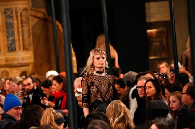 Wang apresentou a sua ousada coleção na igreja de São Bartolomeu, na Fashion Week de Nova Iorque.
