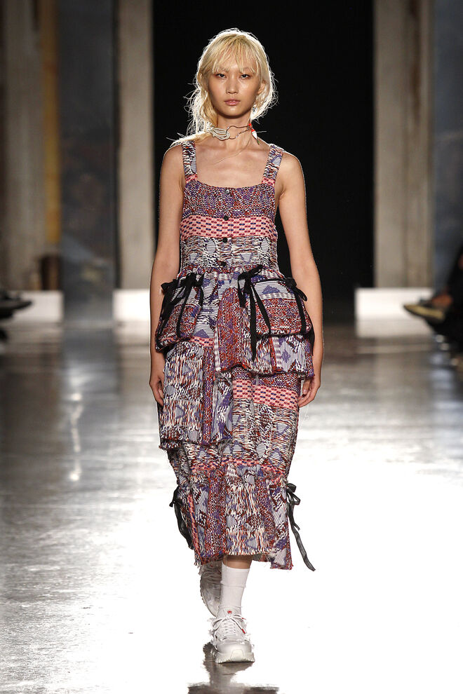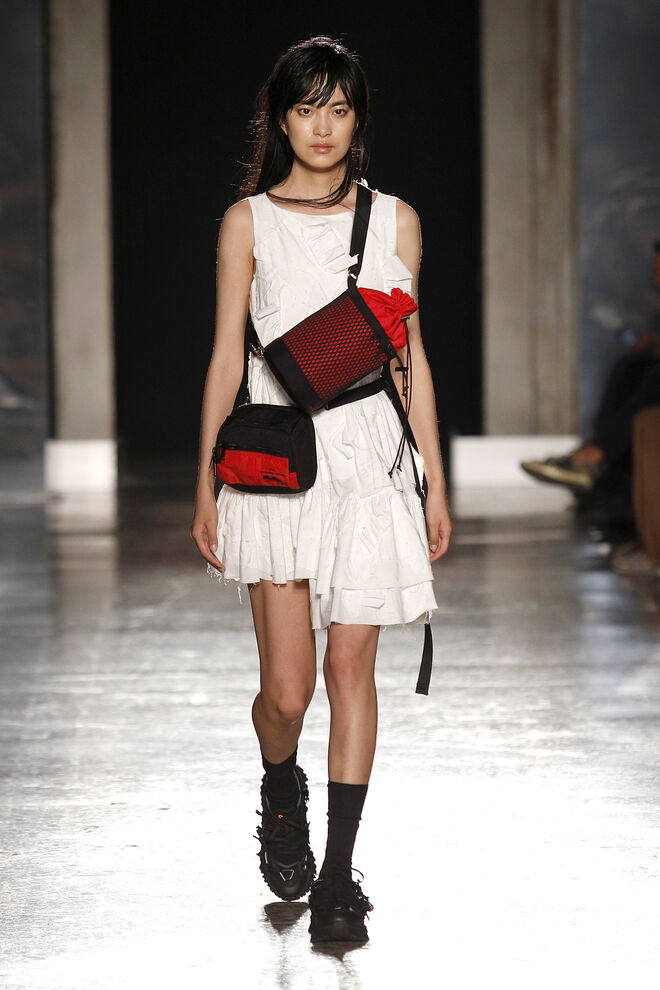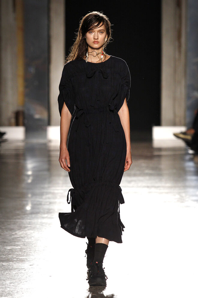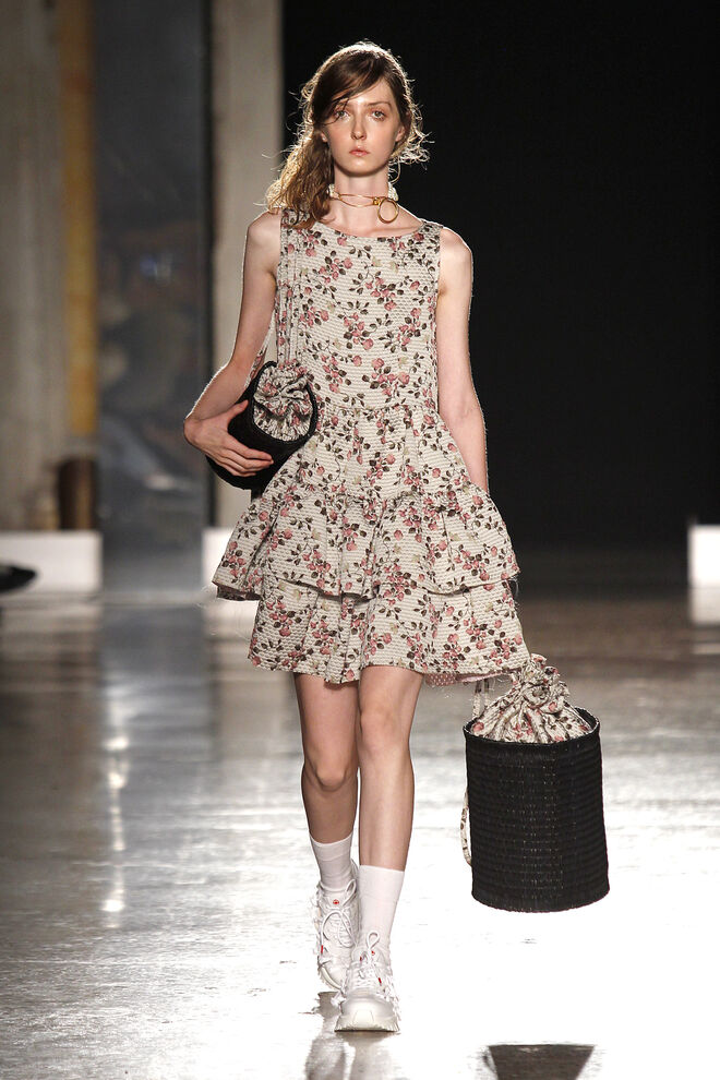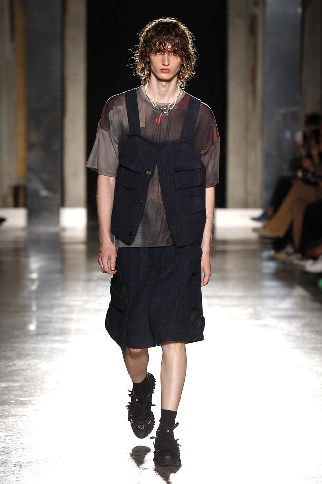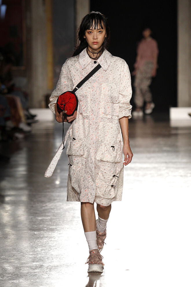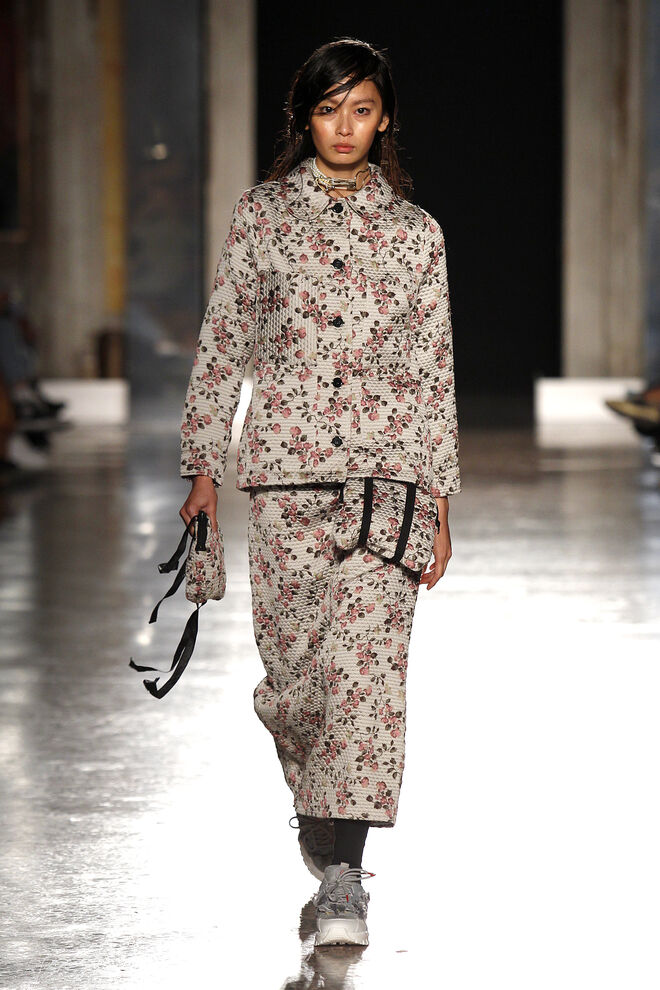Entre os destaques do desfile, estiveram o casaco em tule extremamente leve e suave e o vestido que fechou a apresentação, mais pesado no que diz respeito ao tecido, mas ao mesmo tempo romântico quanto aos cortes e ao estampado (veja na fotogaleria). Isto sem falar nos acessórios: carteiras que já estão na nossa lista de desejo para o próximo ano – incluindo uma em forma de bacalhau. "Essa foi a ideia mais fixe no meio deste processo. Foi virar-me para a equipa e dizer: ‘Vamos fazer uma mala bacalhau em pele.’ E foi logo recebida por toda gente com ‘vamos!’ E eu acho que ficou muito gira no sentindo em que – há uma linha muito ténue no que pode ser mau e no que pode ser bom – e a peça do bacalhau tinha que ser feita de uma forma muito conceptual para que ela vibrasse e vivesse só pela sua forma e não precisasse de mais nada." Trabalho intenso num acessório divertido e que não podia ter maior carimbo nacional.