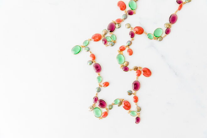 Designer de moda, de acessórios e de joias, Loulou de la Falaise foi muito mais do que a musa de Yves Saint Laurent. Em 1972 ela juntou-se ao criador de moda francês, na conceção de jóias e acessórios que reflectiam a sua personalidade extravagante e inequivocamente sofisticada. Depois de mais de trinta anos ao lado do mestre francês, Loulou viria a criar a sua própria marca de joias, reflexo de um estilo bohemian chic, onde misturava as cores com mestria, sempre inspirada pela natureza. Depois da sua morte, em 2011, Ariel de Ravenel, amiga de longa data e colaboradora, deu continuidade ao legado de Loulou de la Falaise, acrescentando-lhe criações em pâte de verre (uma técnica de uso do vidro), pérolas e pedras semi-preciosas. Produzidas em Paris, as joias são integralmente artesanais e reflectem na perfeição a aura mítica da mulher que se tornou um ícone de estilo. Fomos vê-las de perto na Antique, a loja localizada no hotel Ritz Four Seasons, em Lisboa, que detém a exclusividade da representação nacional da marca. E foi também aí, na loja que em 2019 assinala o seu 60º aniversário, que conhecemos a encantadora Ariel de Ravenel.