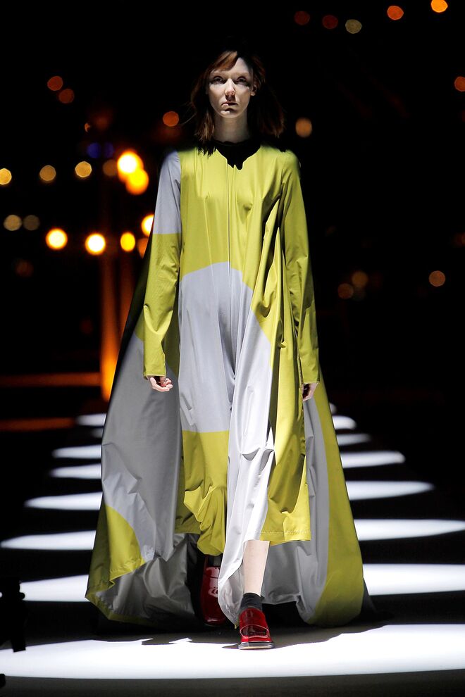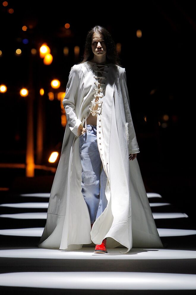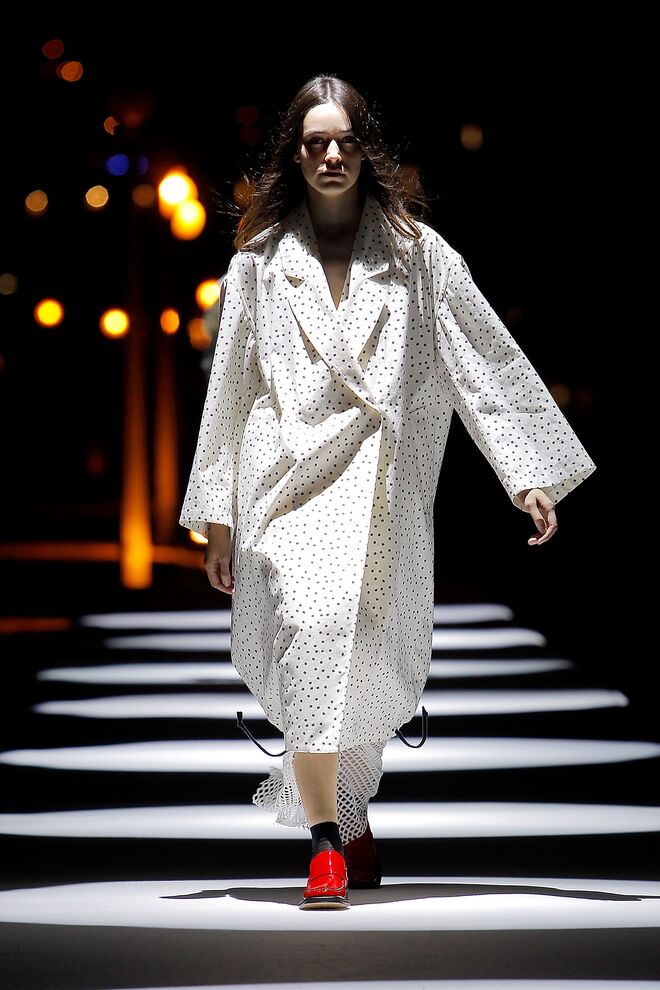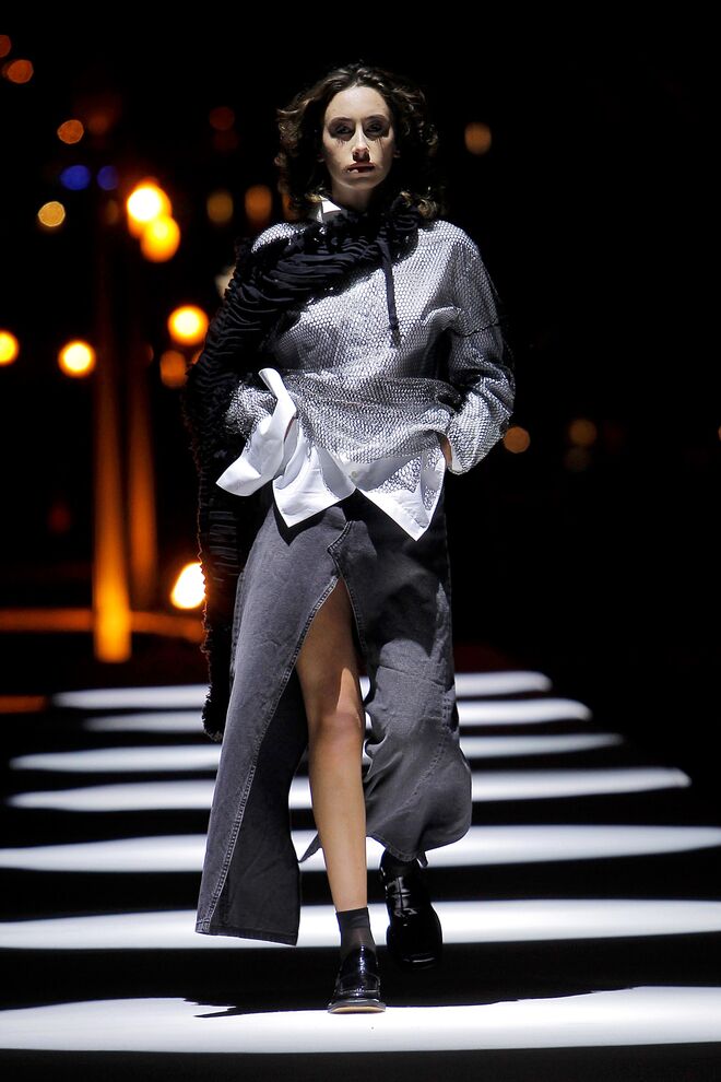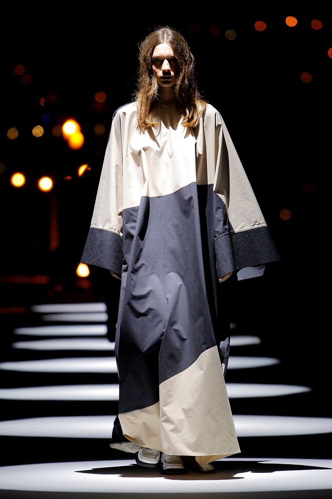 Esta coleção desperta a nossa atenção pelas camadas e a fluidez dos tecidos, que combinavam com as silhuetas largas e descontraídas. Os tons das peças são maioritariamente mais escuros, quase todos combinados com o preto. No entanto, também há peças claras e cheias de luz.