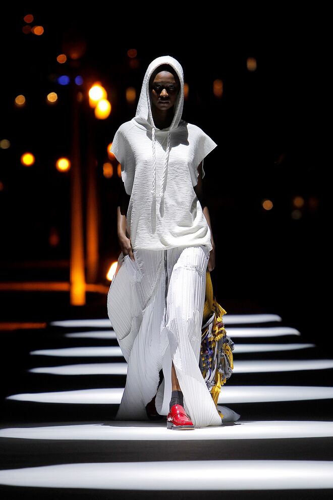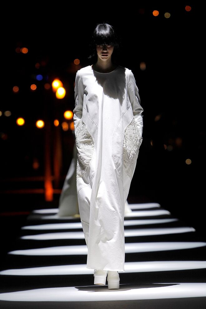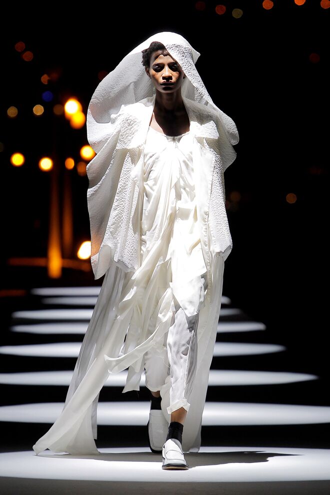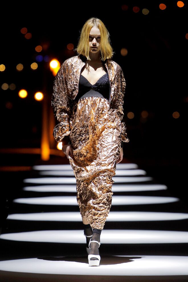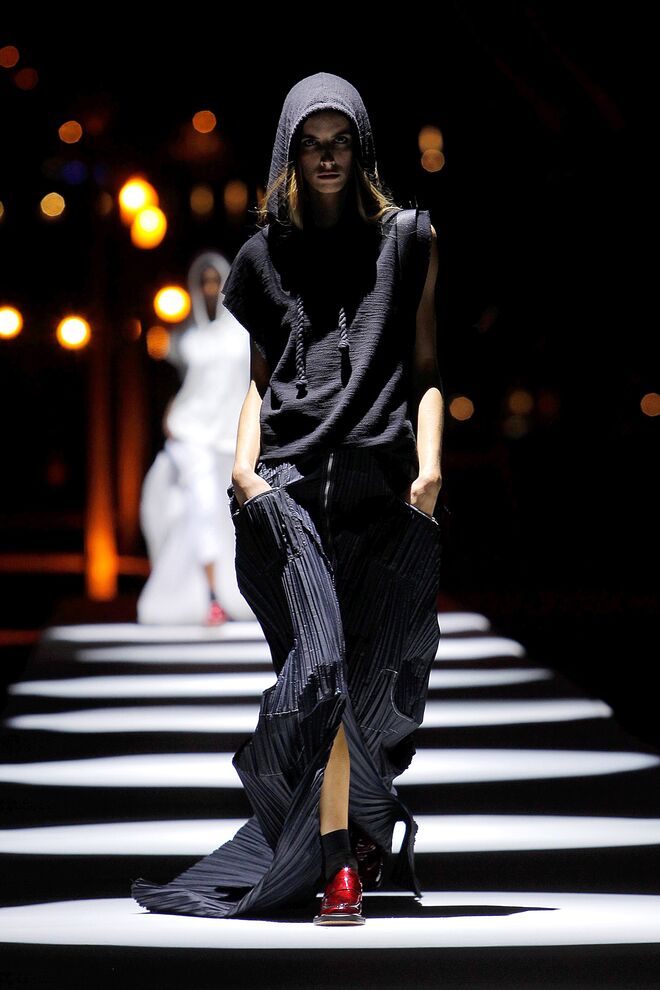 Esta coleção desperta a nossa atenção pelas camadas e a fluidez dos tecidos, que combinavam com as silhuetas largas e descontraídas. Os tons das peças são maioritariamente mais escuros, quase todos combinados com o preto. No entanto, também há peças claras e cheias de luz.