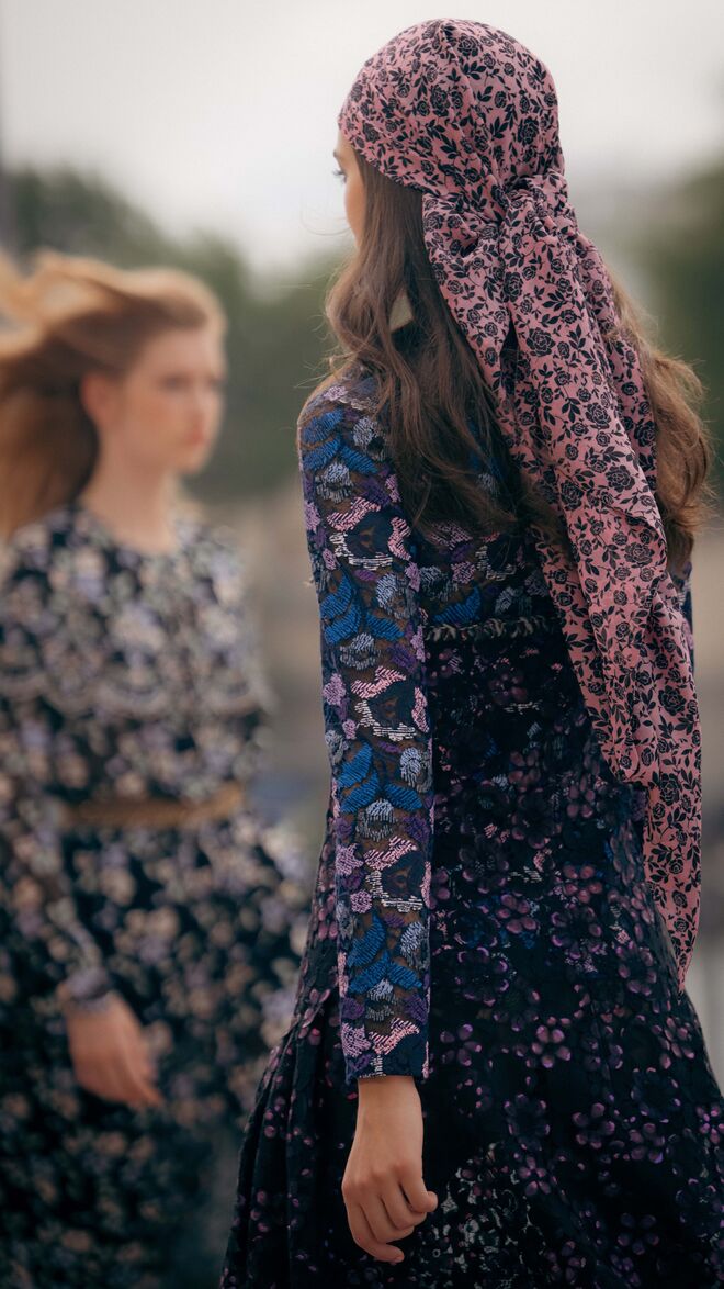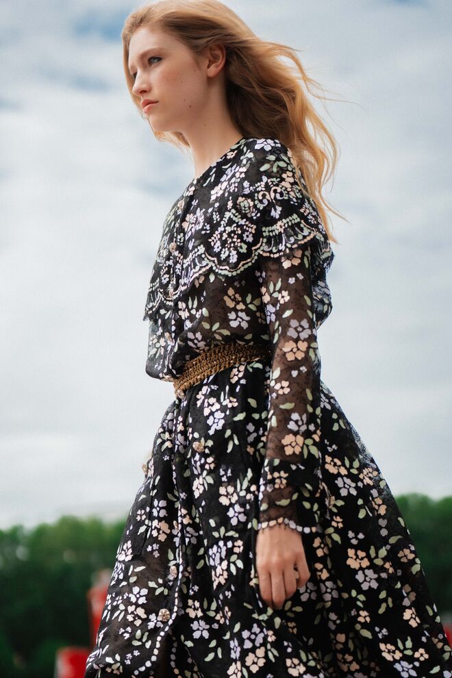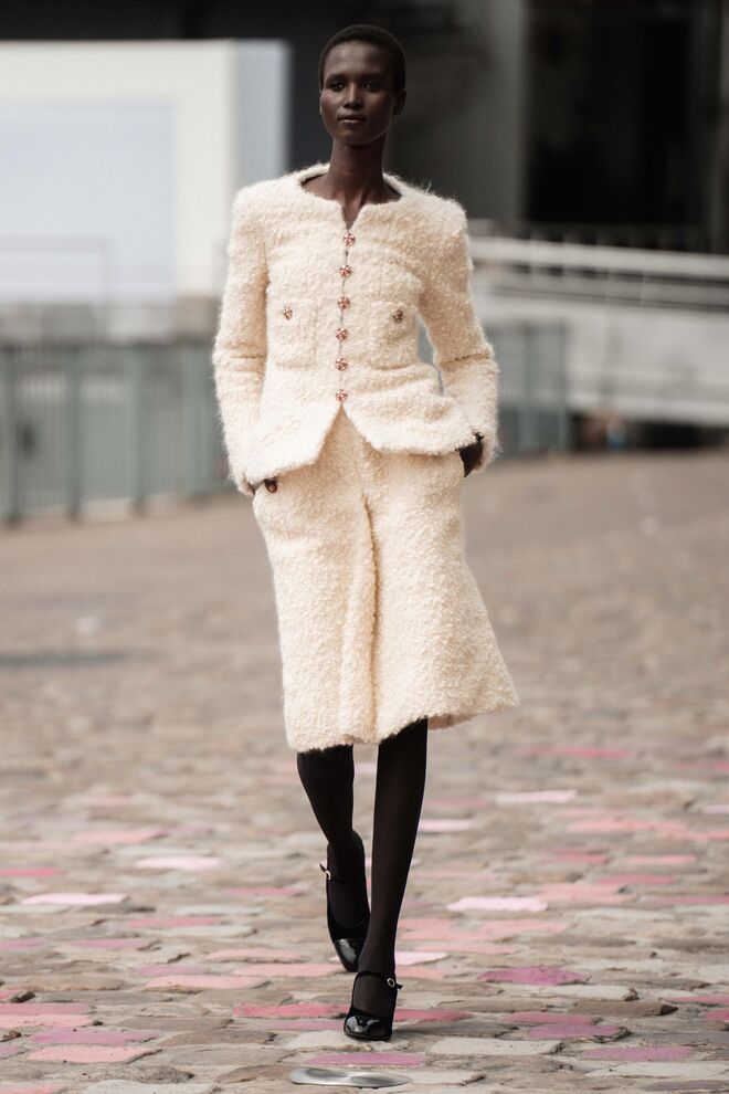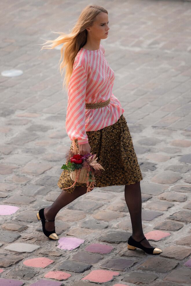 Bordados com motivos florais, tweed e tecidos leves e delicados vestiram o que Virginie Viard, diretora artística da casa, imaginou como o sonho de uma mulher francesa, personificada em vídeo pela cantora Vanessa Paradis.