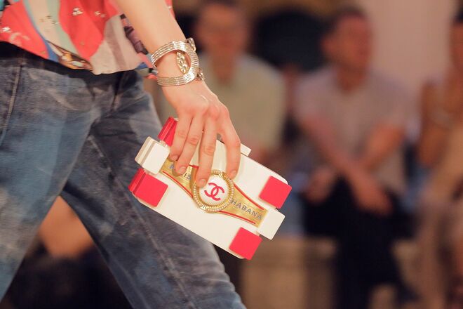 Os acessórios desta coleção Cruise 2017 foram pensados um pouco também à imagem e semlhança das tradições de Cuba. As carteiras, muitas delas surgem despojadas de formato, em forma de saco ou mochila.Apresentam igualmente uma enorme influência militar - as boinas pretas com estrelas prateadas e o tom verde escuro em algumas das carteiras são um bom exemplo disso. Foi a forma de Karl Lagerfeld lembrar os uniformes de Fidel Castro, Che Guevara e Camilo Cienfuegos. Algumas das peças surgem ainda com letras estampadas com o nome Coco Club, uma referência ao conhecido casino e cabaret Tropicana Club que atraía tantos turistas à ilha na década de 40.