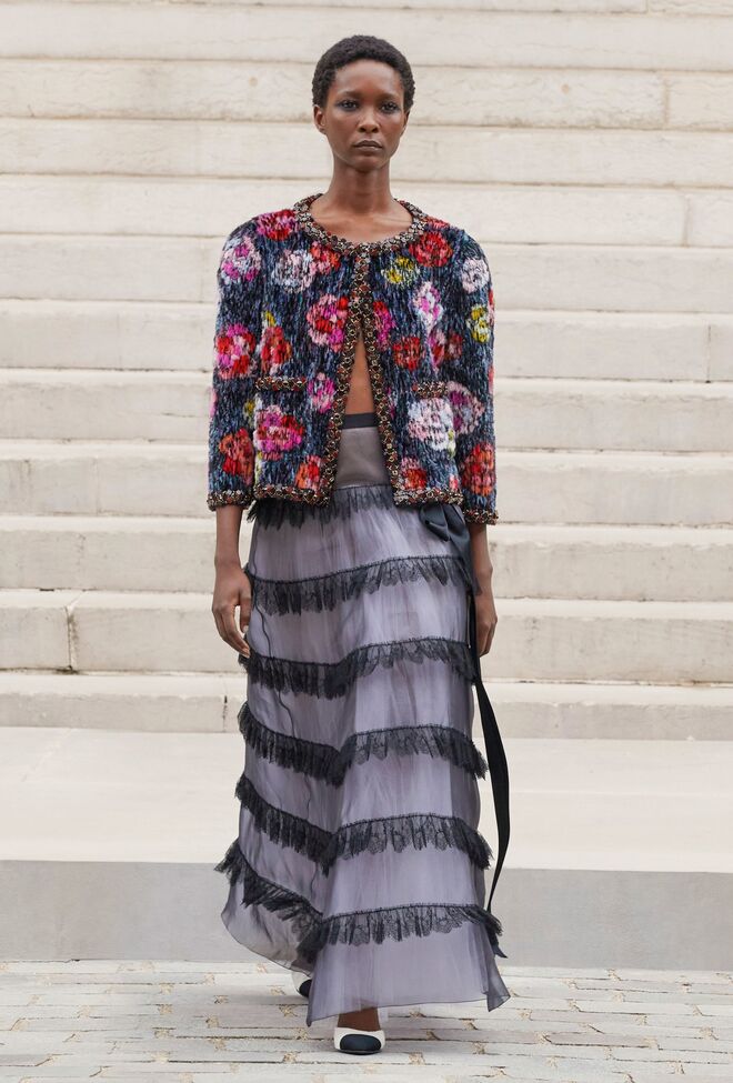 Os anos 90 estão de volta! Em pleno Grand Palais, a diretora criativa da maison, Virginie Viard, evocou novamente a década e o tempo em que as supermodelos faziam as delícias dos fotógrafos, desfilando em poses atrevidas e com uma confiança desmedida.