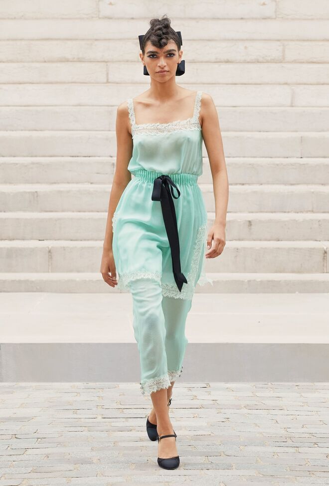"Imaginei as modelos a fazer um espectáculo para si próprias, a ir de sala em sala, a cruzarem-se em escadas, a amontoarem-se no bengaleiro e a subirem para o andar seguinte para se mudarem. E pensei nos espectáculos de que Karl me falou, há muito tempo atrás, quando as modelos se vestiam e faziam a sua própria maquilhagem", diz Virginie Viard sobre o desfile ready-to-wear da Chanel para o outono-inverno de 2021, um belíssimo regresso ao passado.