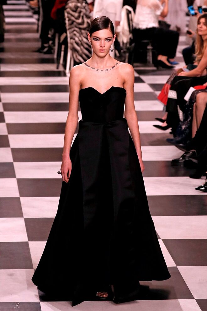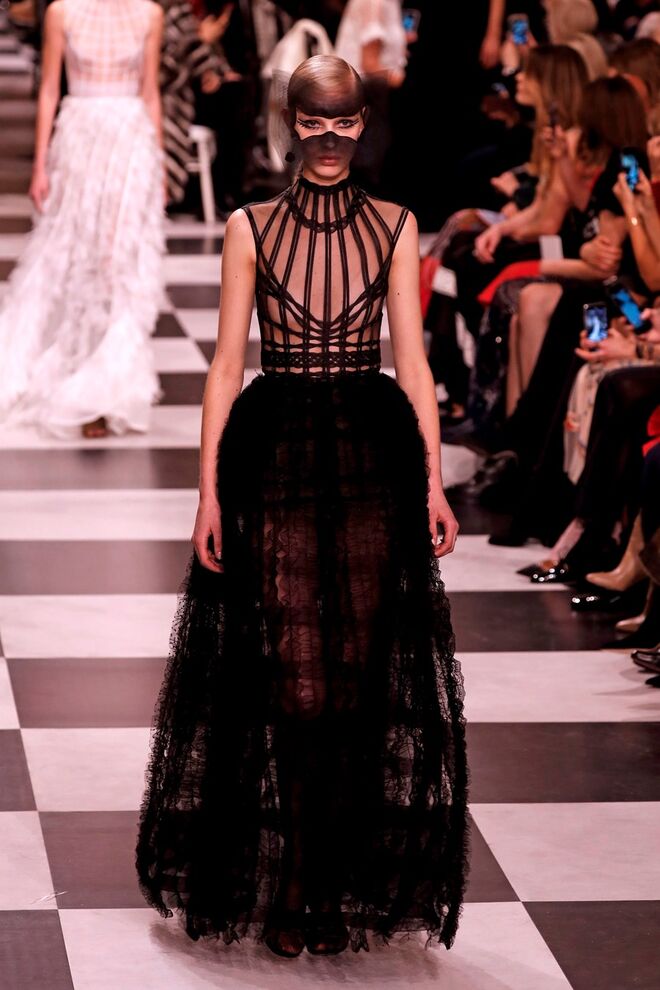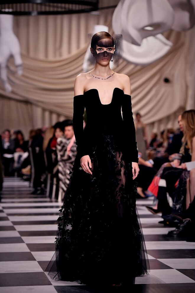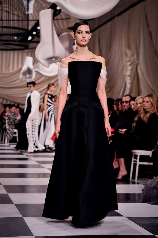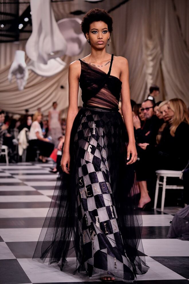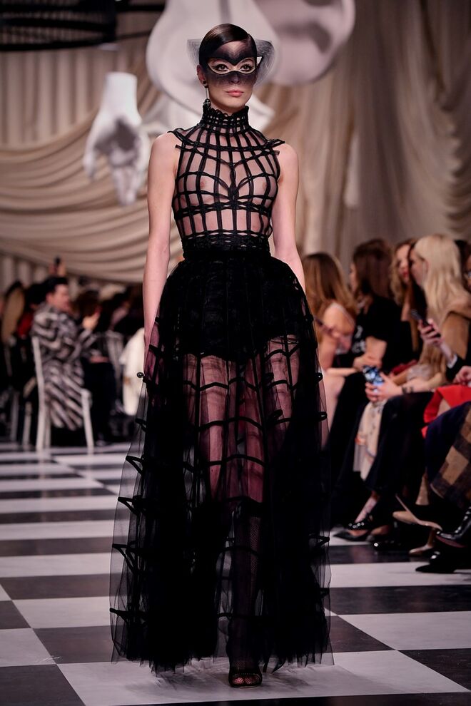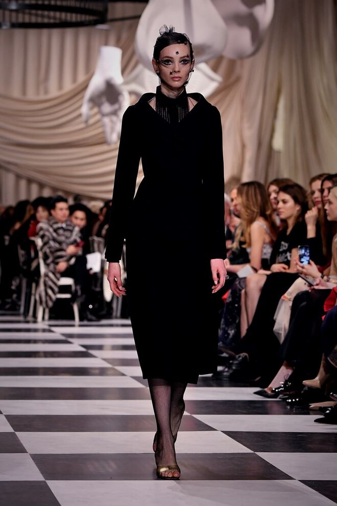 A tenda gigante montada nos jardins do Museu Rodin, em Paris, foi decorada com referências a Alice no País das Maravilhas, a primeira pista de que esta seria uma coleção que nos levaria para outros mundos. Maria Grazia Chiuri quis explorar a beleza do subconsciente, recuperando as ideias de Freud e a estética do surrealismo, numa coleção dramática e dominada pelo preto.
