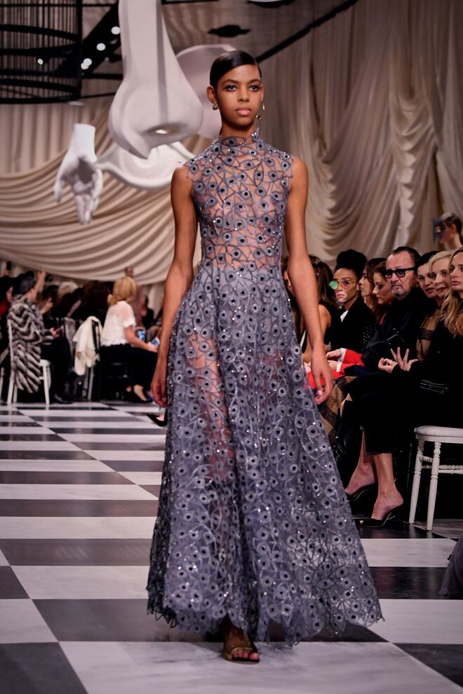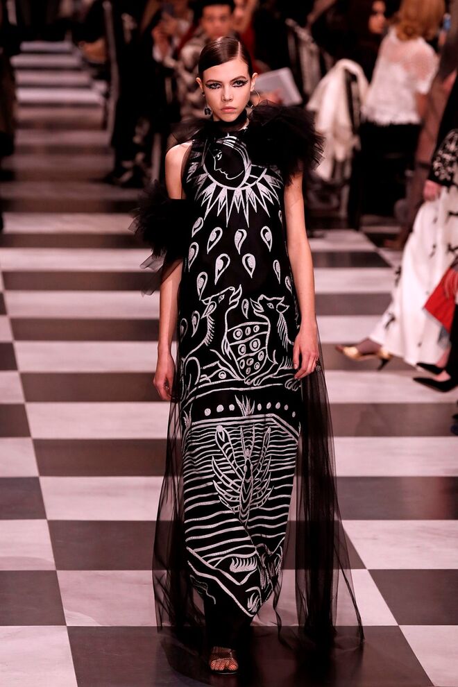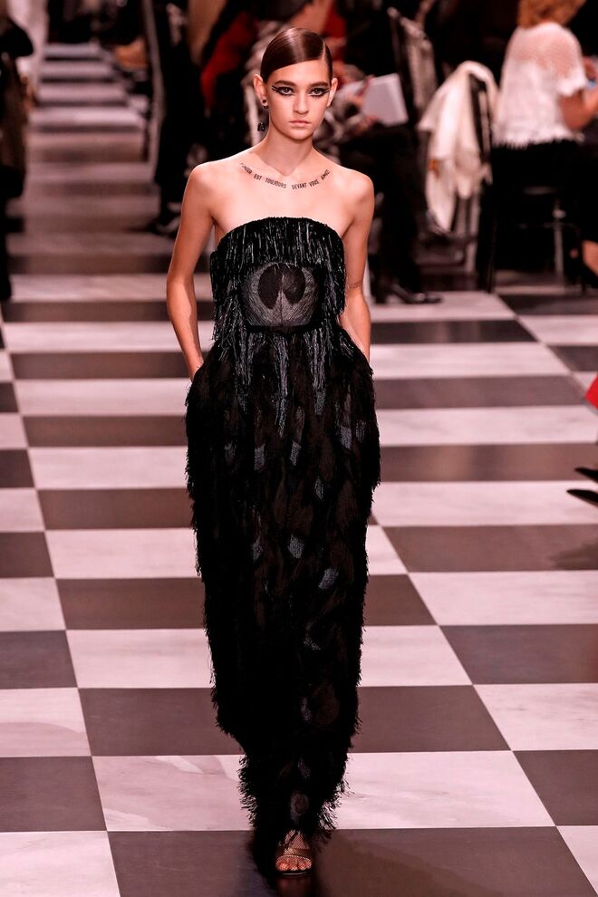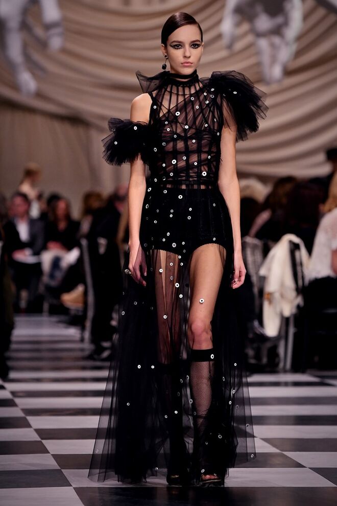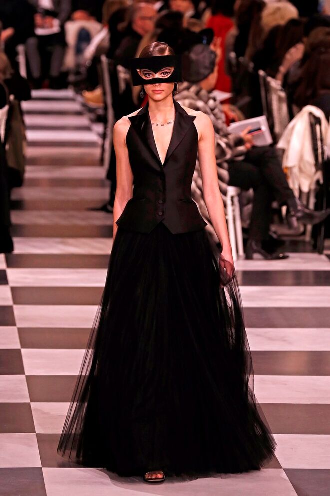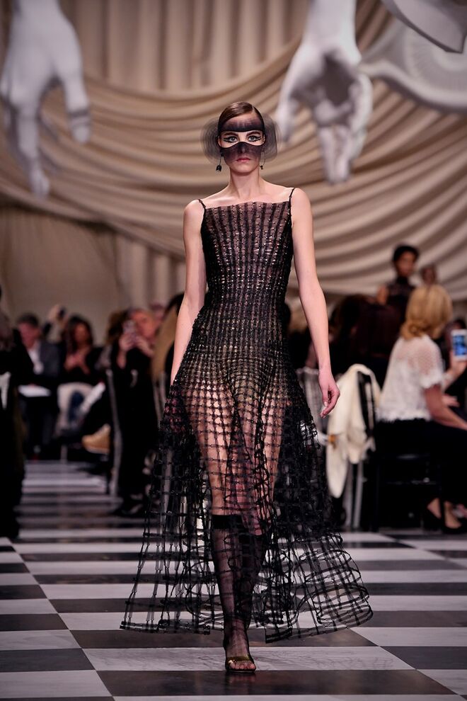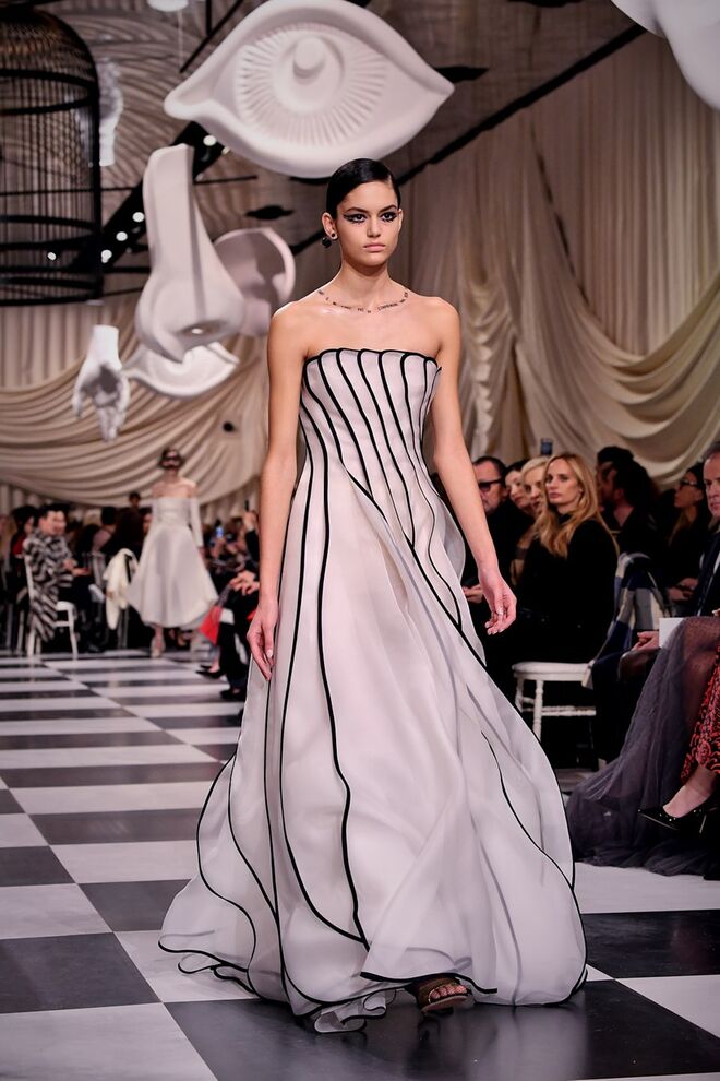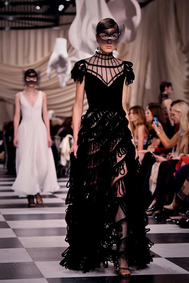A tenda gigante montada nos jardins do Museu Rodin, em Paris, foi decorada com referências a Alice no País das Maravilhas, a primeira pista de que esta seria uma coleção que nos levaria para outros mundos. Maria Grazia Chiuri quis explorar a beleza do subconsciente, recuperando as ideias de Freud e a estética do surrealismo, numa coleção dramática e dominada pelo preto.