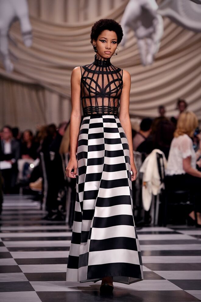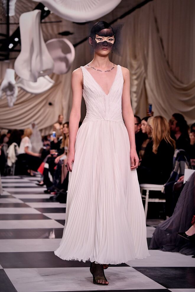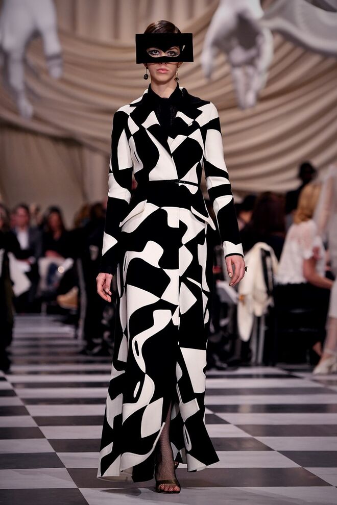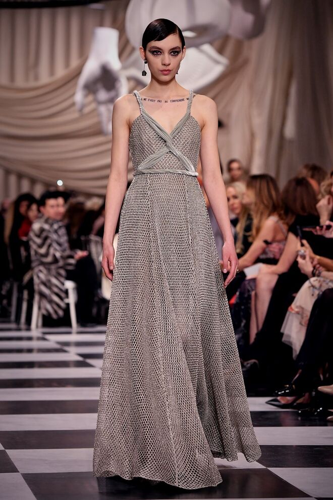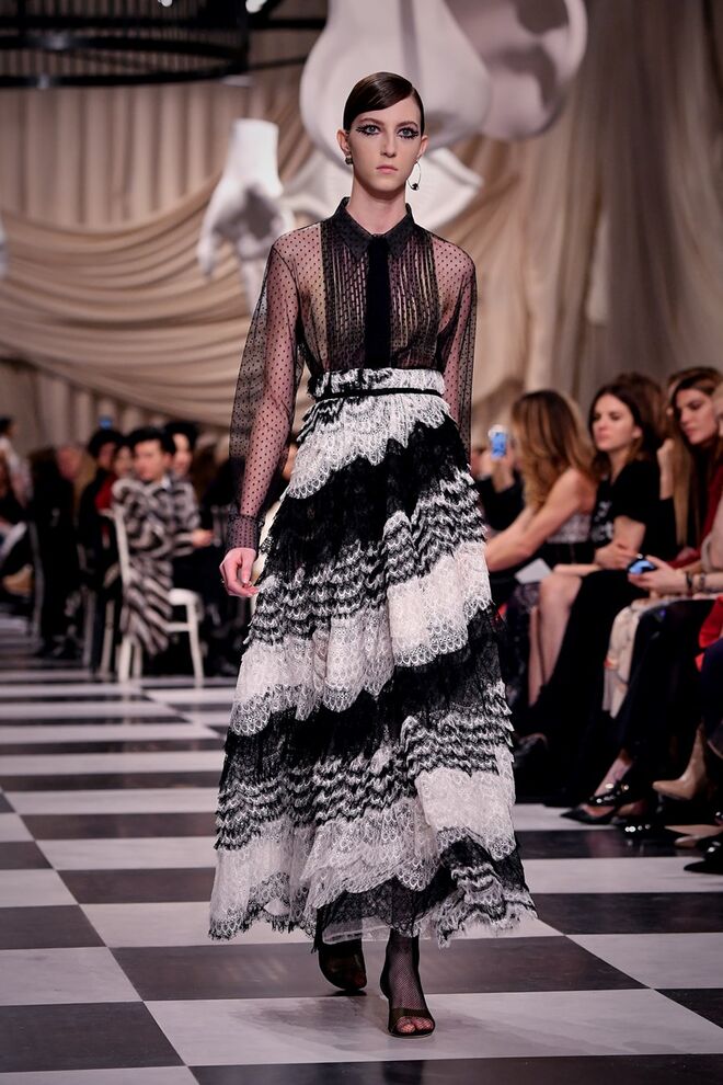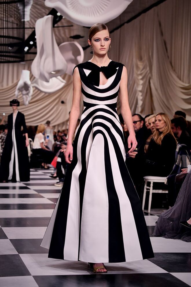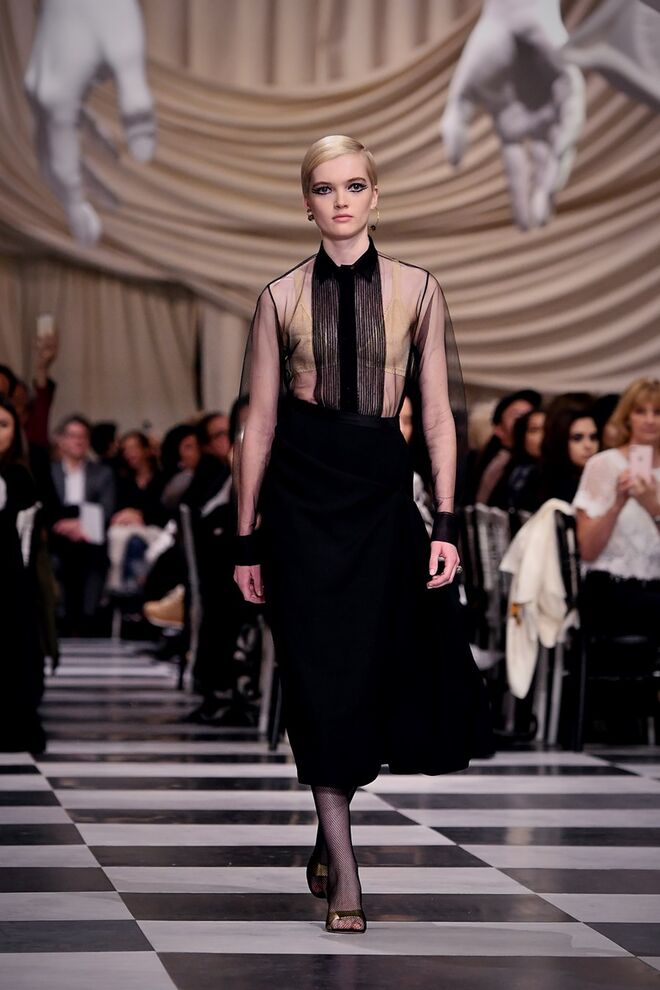 A tenda gigante montada nos jardins do Museu Rodin, em Paris, foi decorada com referências a Alice no País das Maravilhas, a primeira pista de que esta seria uma coleção que nos levaria para outros mundos. Maria Grazia Chiuri quis explorar a beleza do subconsciente, recuperando as ideias de Freud e a estética do surrealismo, numa coleção dramática e dominada pelo preto.