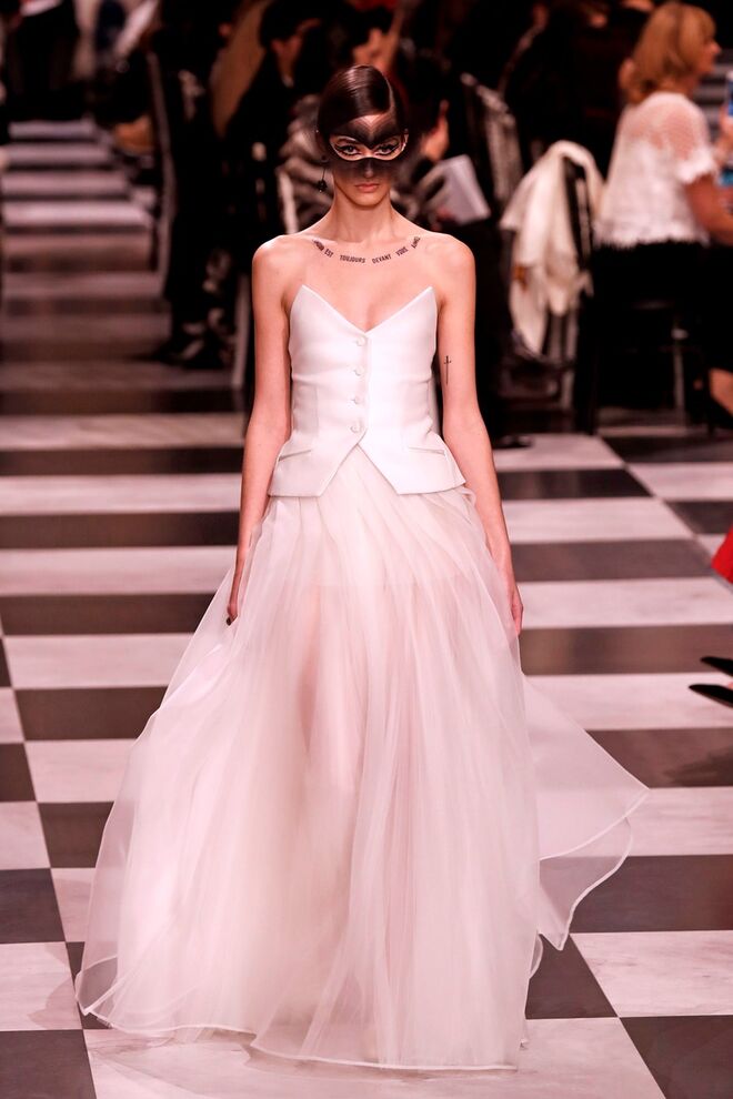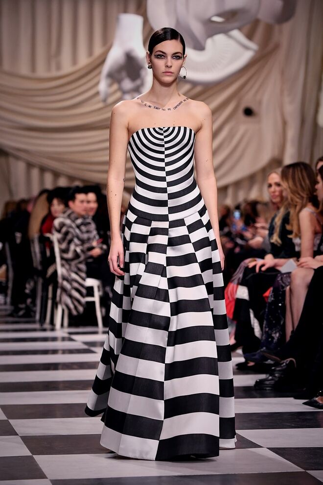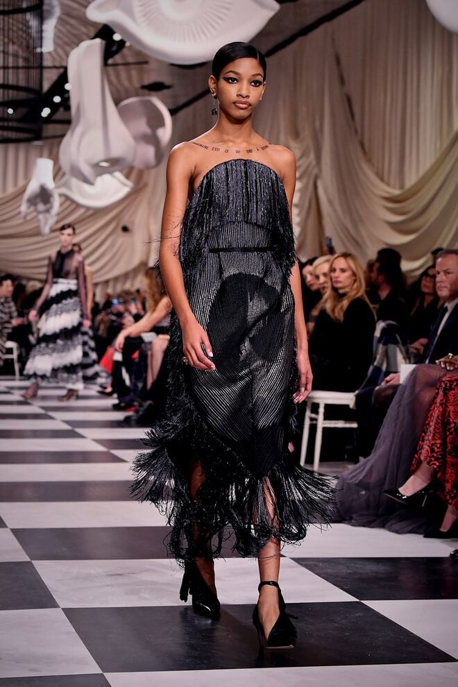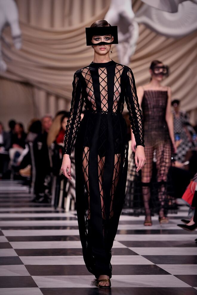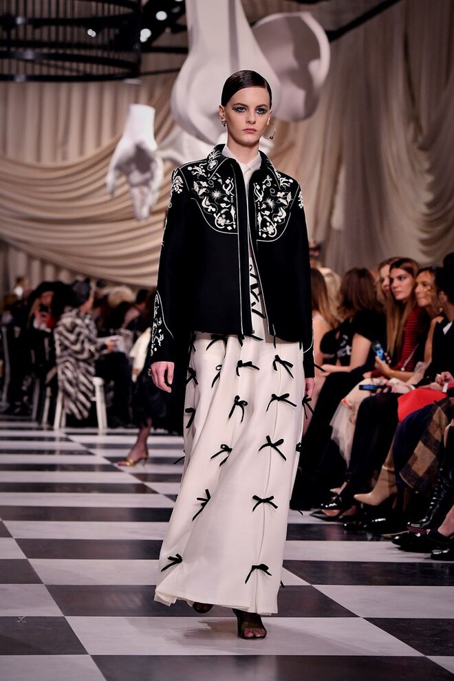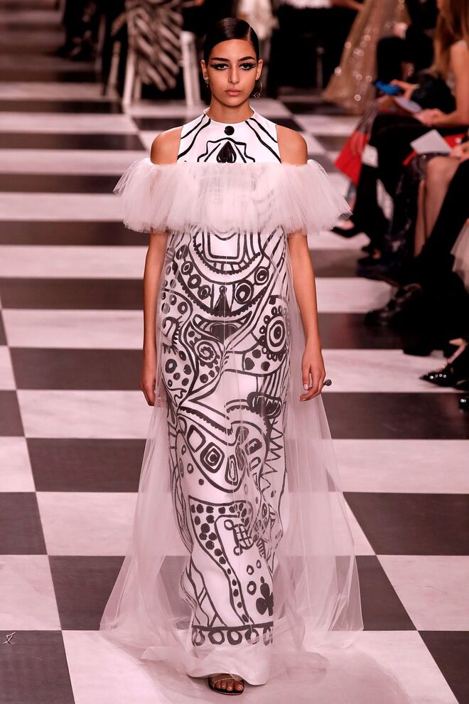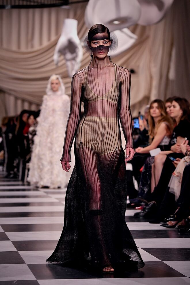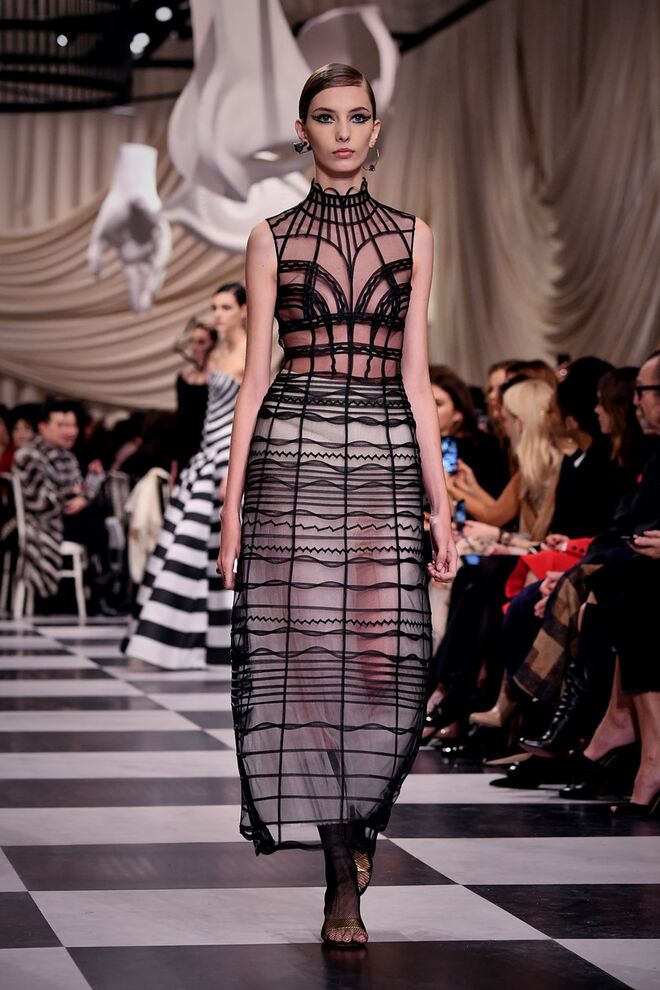 A tenda gigante montada nos jardins do Museu Rodin, em Paris, foi decorada com referências a Alice no País das Maravilhas, a primeira pista de que esta seria uma coleção que nos levaria para outros mundos. Maria Grazia Chiuri quis explorar a beleza do subconsciente, recuperando as ideias de Freud e a estética do surrealismo, numa coleção dramática e dominada pelo preto.