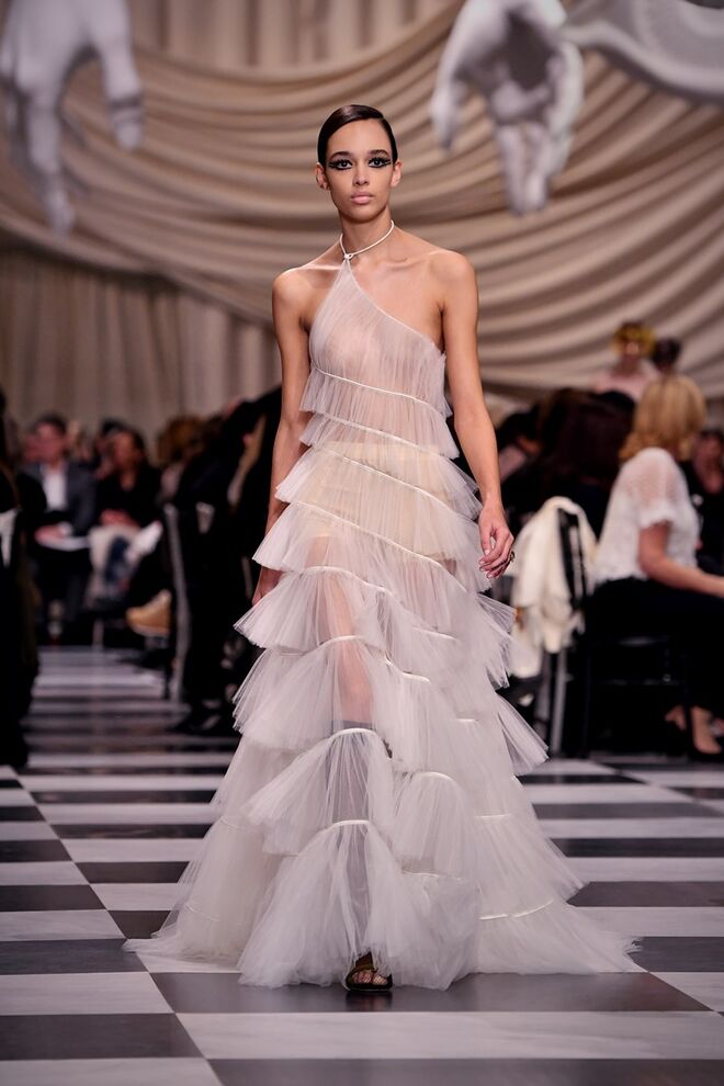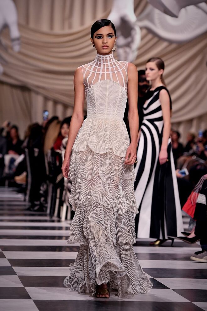 O criador italiano trouxe um conto de fadas para Paris, entre a couture mais extravagante e os seus habituais vestidos de princesa, incluindo algumas versões mais curtas, com detalhes em pele e renda e outras curtas à frente e compridas atrás. As estrelas do desfile foram os três vestidos finais, em chiffon e tule, cada um mais opulento do que o anterior, em cor de pêssego, lima e rosa algodão doce.