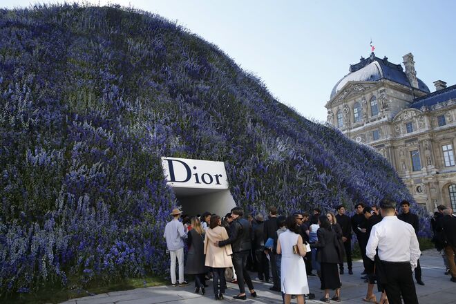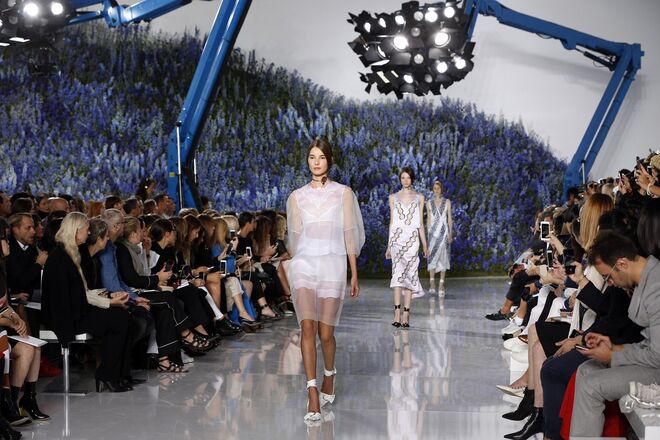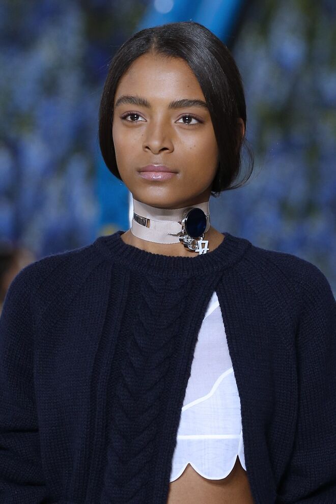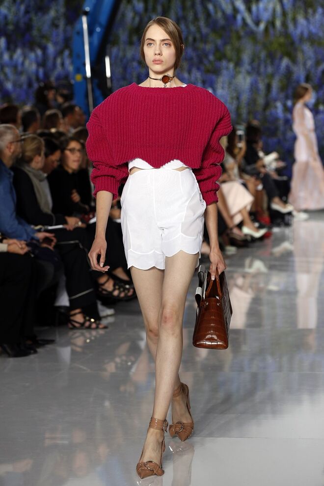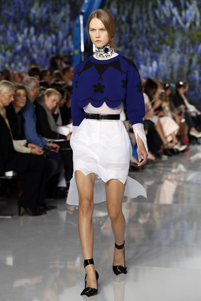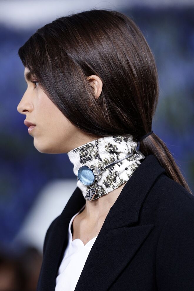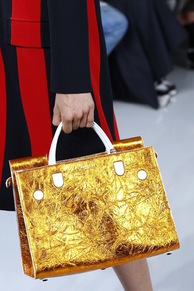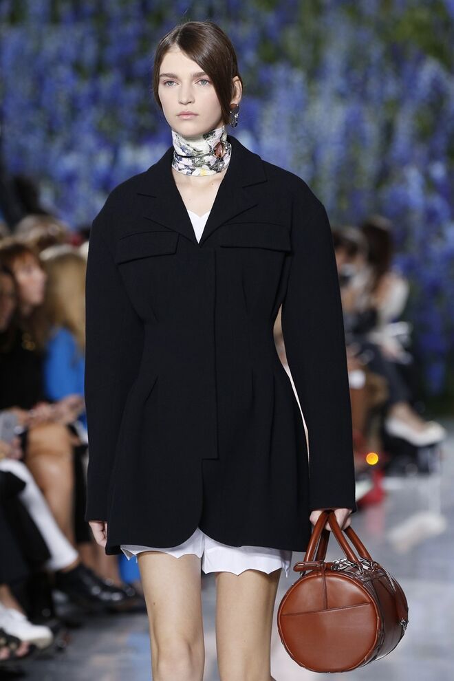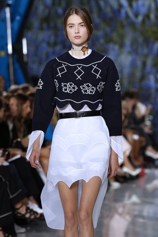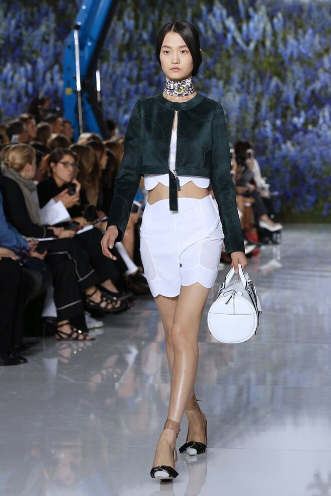 O branco e o preto andam lado a lado com as riscas e os tecidos recortados na nova coleção Dior. Destacam-se os acessórios em dourado e branco.