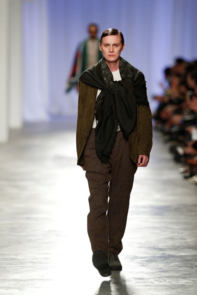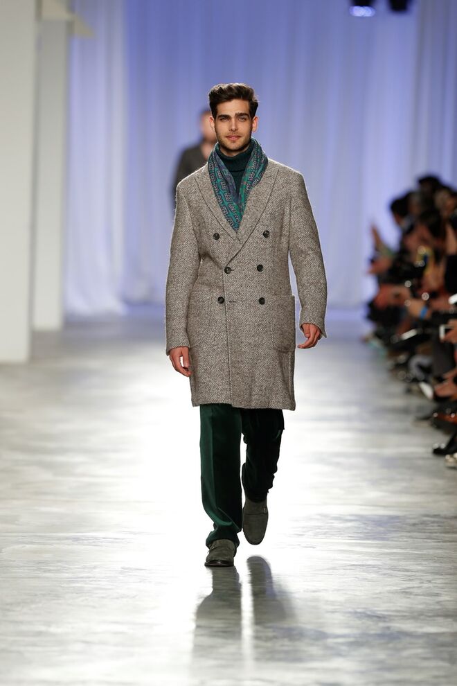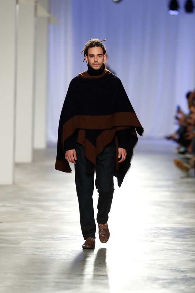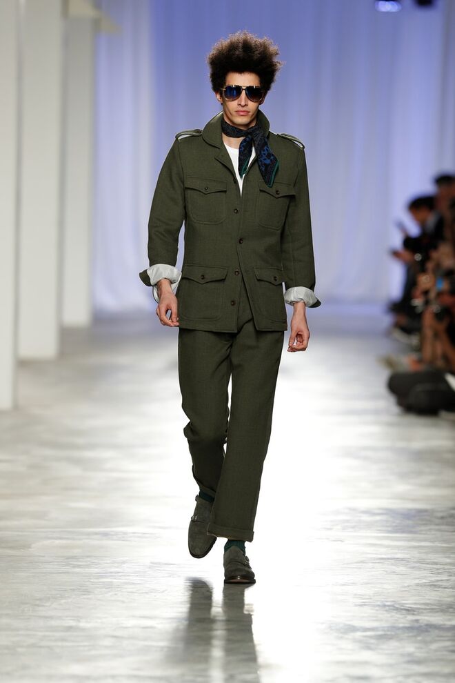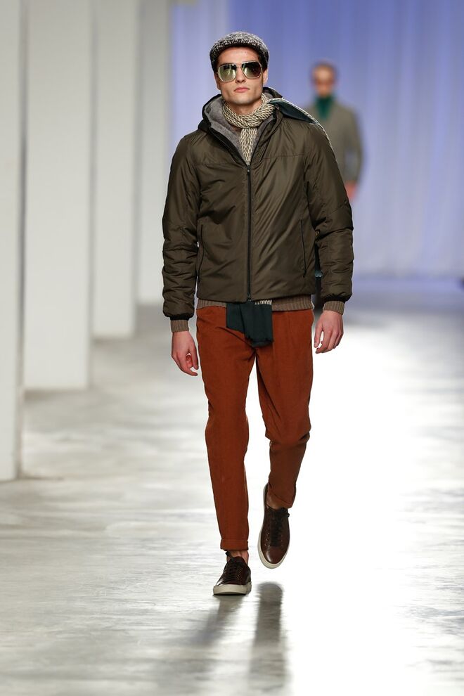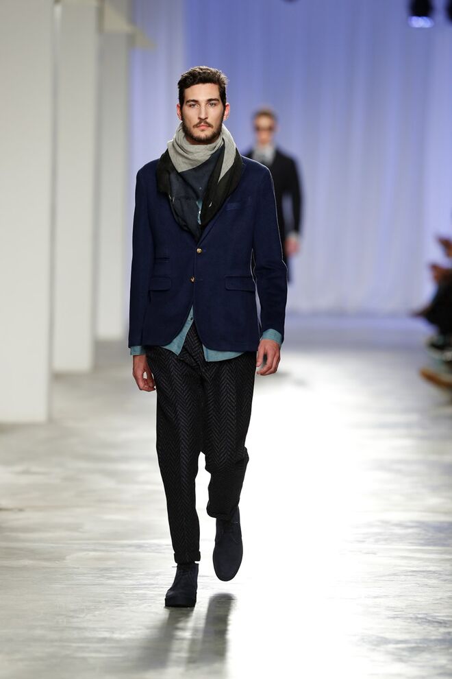 Numa história pincelada a tons terra, verdes militares e o sofisticado branco gelo, a estação fria de Mustra inspira-se na italiana Nápoles. Como matérias-primas destacam-se as nobres caxemira e alpaca que se sobrepõem a algodões, moleskin, veludos e tweeds lavados, construindo silhuetas improváveis.
