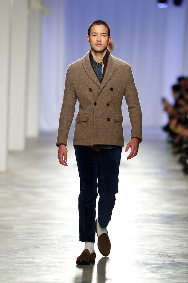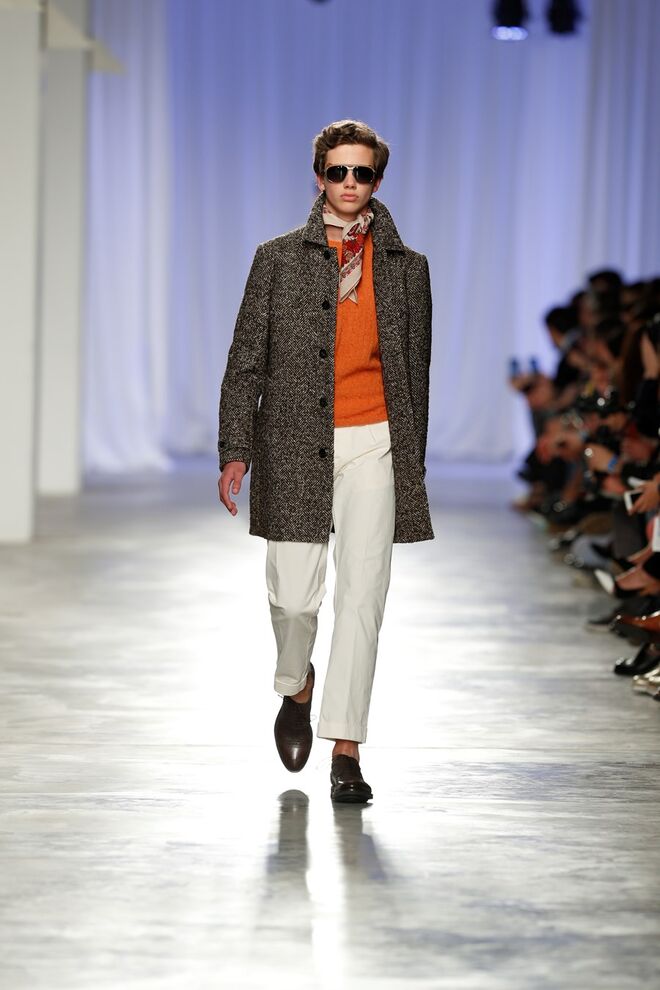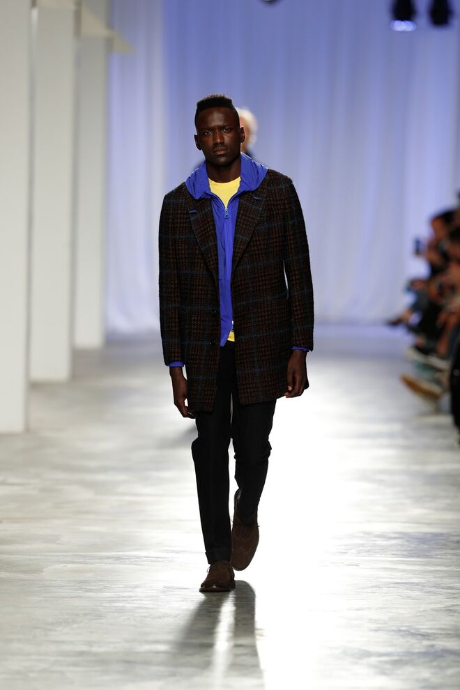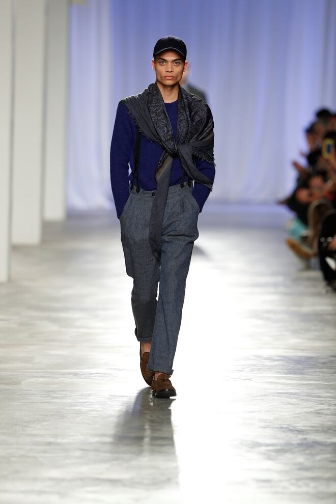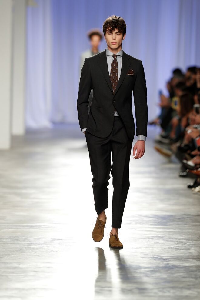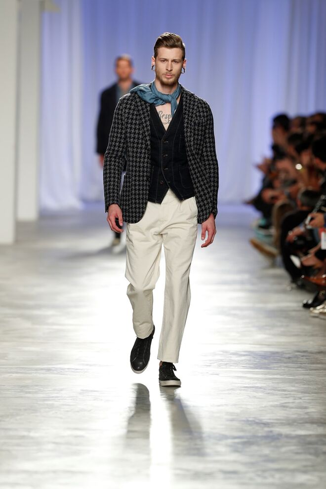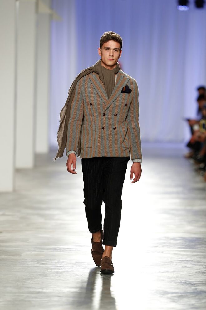 Numa história pincelada a tons terra, verdes militares e o sofisticado branco gelo, a estação fria de Mustra inspira-se na italiana Nápoles. Como matérias-primas destacam-se as nobres caxemira e alpaca que se sobrepõem a algodões, moleskin, veludos e tweeds lavados, construindo silhuetas improváveis.