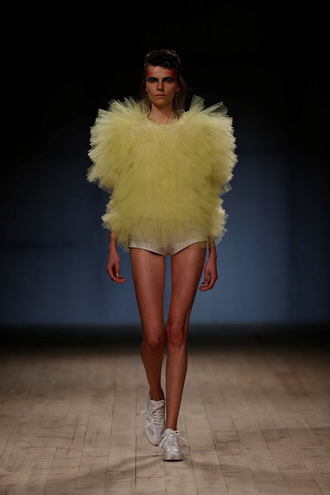 A proposta Dino Alves para o próximo verão assenta numa multiplicidade de tecidos e formas, do mais excêntrico ao mais minimalista, do mais suave ao mais acentuado - quando falamos da silhueta. As últimas modelos surgem empoeiradas, deixando rastos de pó no ar à medida que passam. Um efeito visual original que marcou a diferença neste segundo dia da ModaLisboa Together.