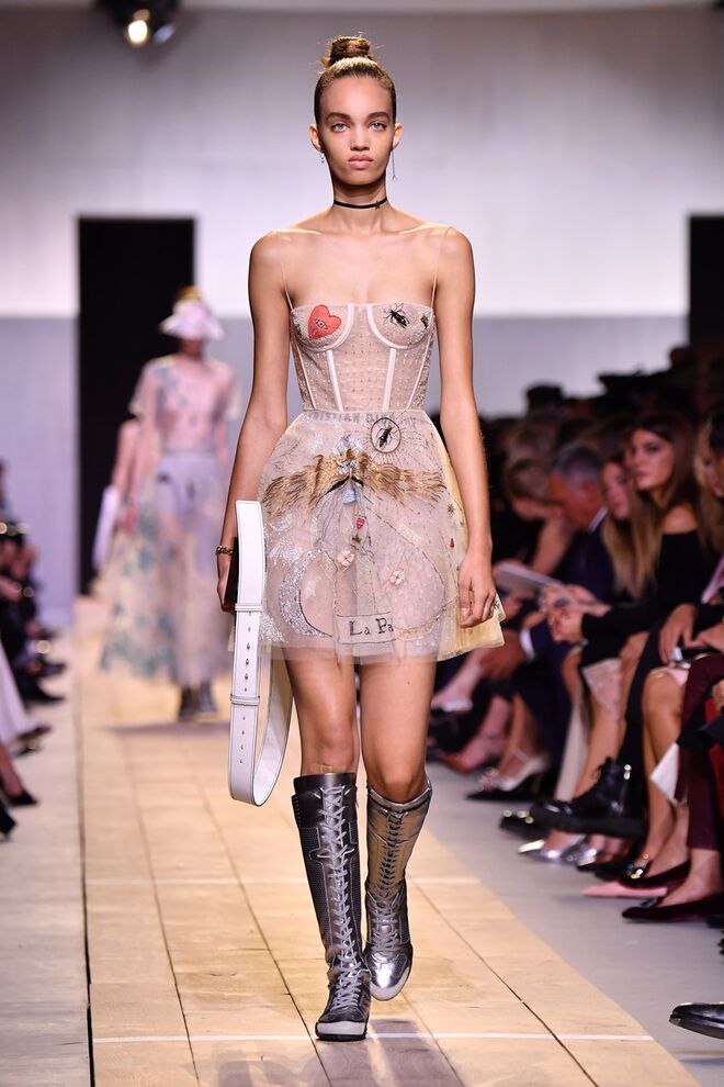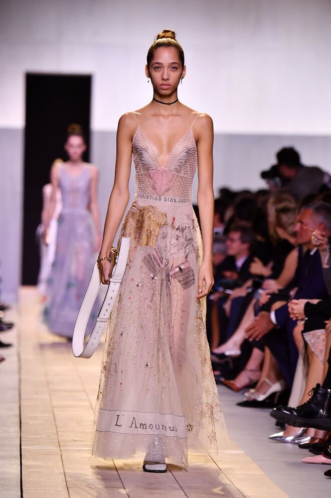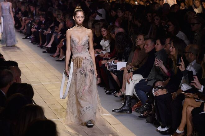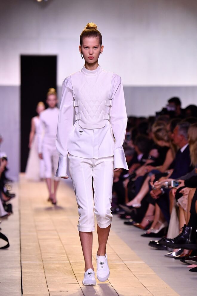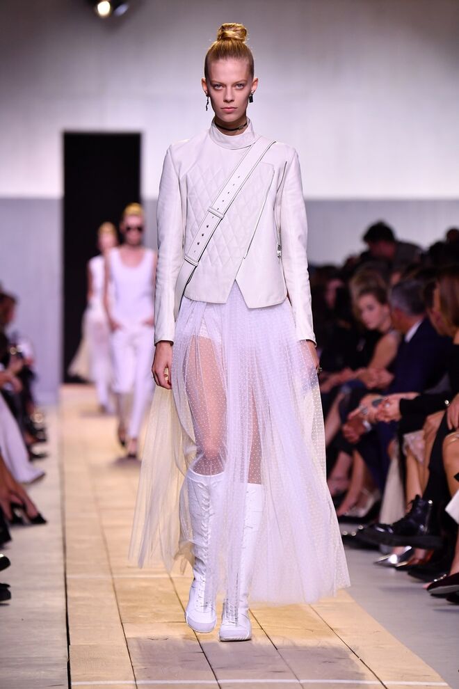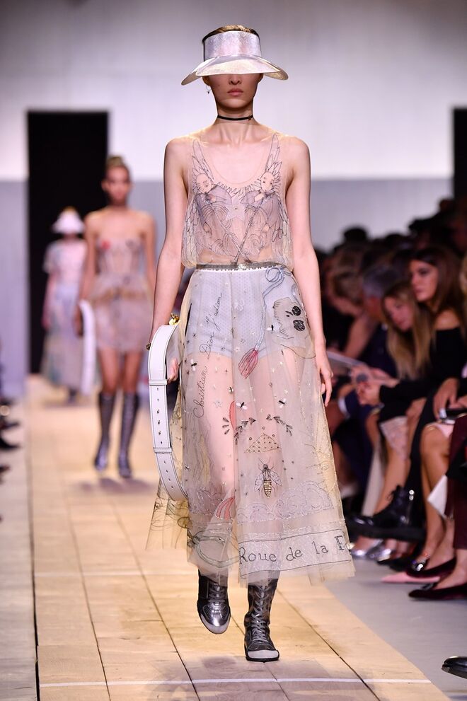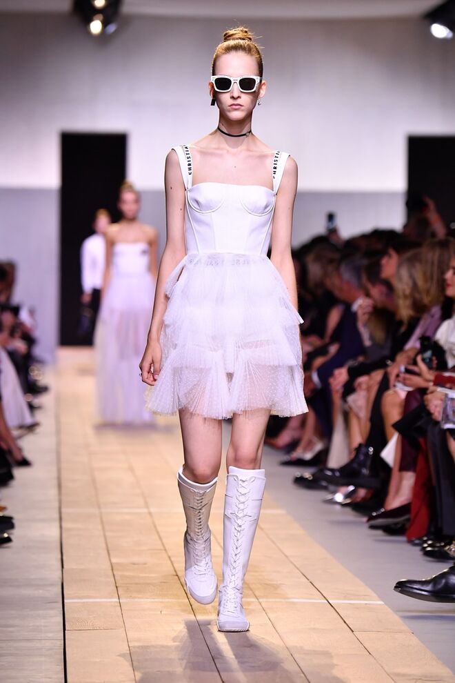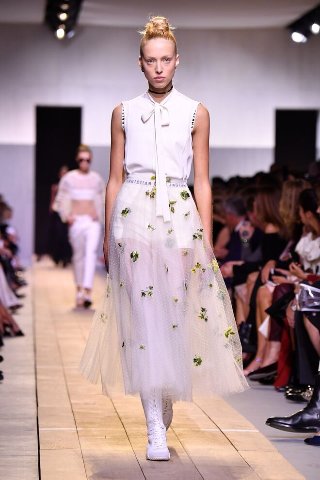 Dior apostou em tons neutros e suaves, como o branco e o bege, para 'pintar' a coleção do próximo verão. A casa francesa apresentou em Paris uma proposta romântica e feminina, onde o destaque são as saias e vestidos estilo bailarina em tule, os conjuntos sportswear, e com um ligeiro toque edgy nas camisolas com frases statement.
