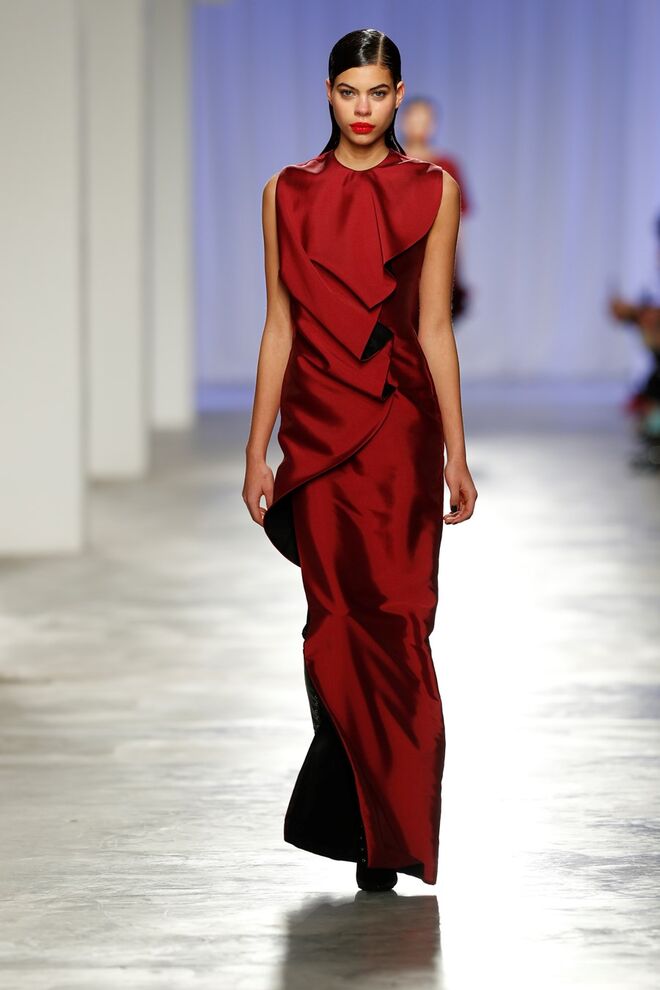 O designer quis contrastar o volume da silhueta, entre o fluido e o estruturado, não só nos materiais (com diferentes texturas) mas também nas cores. As cores escurecem, tendo como base da paleta o preto e o azul, e o verde profundo e o vermelho oriental surgem como cores contrastantes. A sensação de leveza e tranquilidade vivida neste ambiente é também representada pelas transparências e pelo brilho dos materiais.
