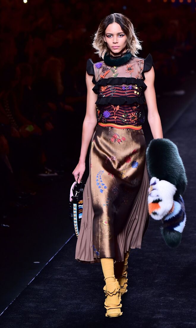 Coordenados em folhos, o regresso dos visons, uma dose dupla de brilho e cor. Assim é a nova coleção de Fendi, apresentada durante a Fashion Week de Milão, uma proposta para um outono com vida e atitude sem nunca descurar a classe intrínseca à marca.