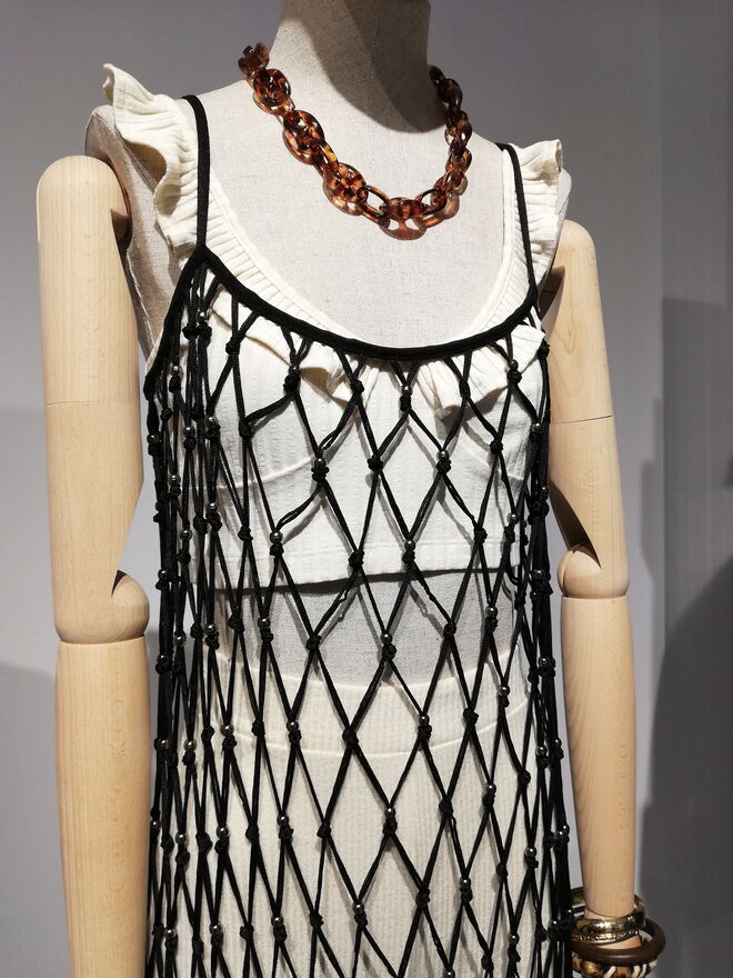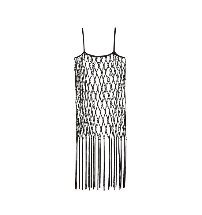 As franjas estão presentes em casacos e são combinadas num vestido de rede estilo de pesca. O movimento e a fluidez das peças combinam com a leveza da estação.