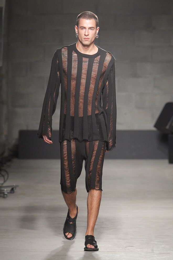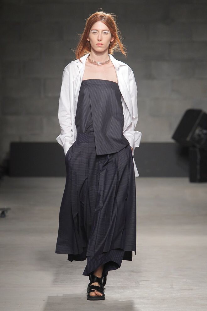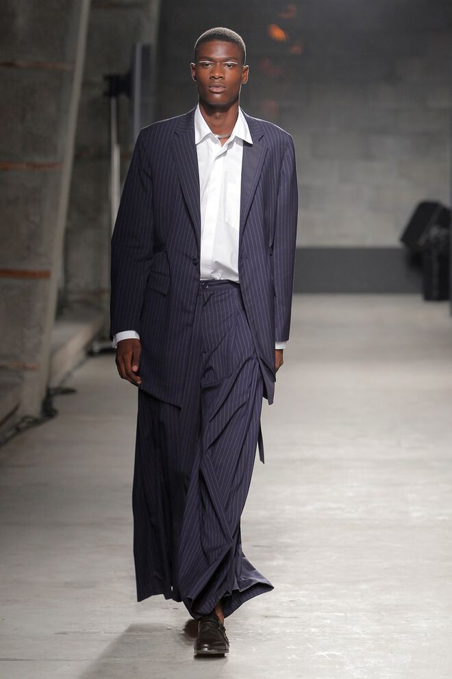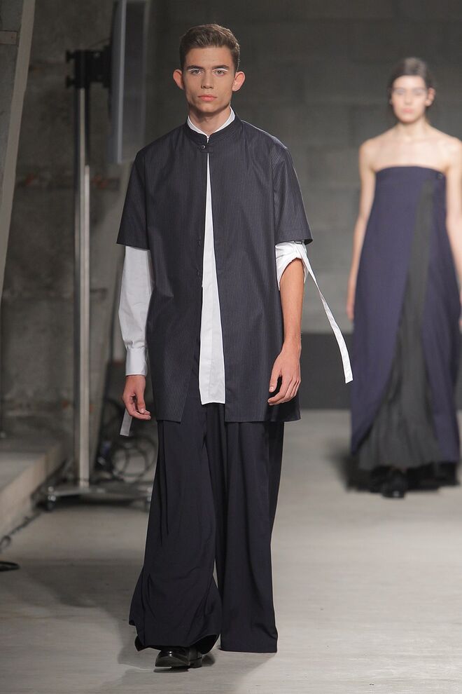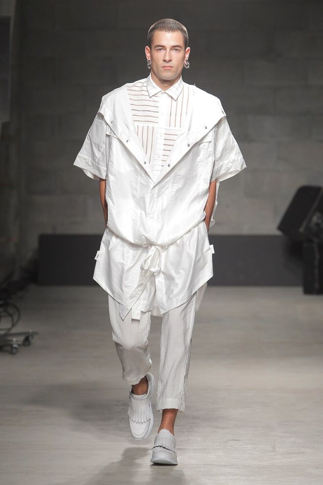 SKETCH (SELF-PORTRAIT) de Inês Torcato define um esboço de uma auto-análise ao conhecimento individual, à procura de um entendimento mais profundo da identidade coletiva através da partilha da individualidade. Representado com uma linguagem clássica desconstruída, traduzida no trabalho de tipologias como o blazer, sobretudo ou camisa, trazendo o interior para o exterior, a desconstrução sobre o construído.