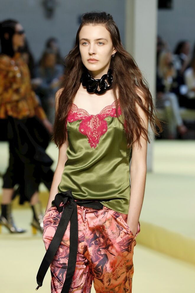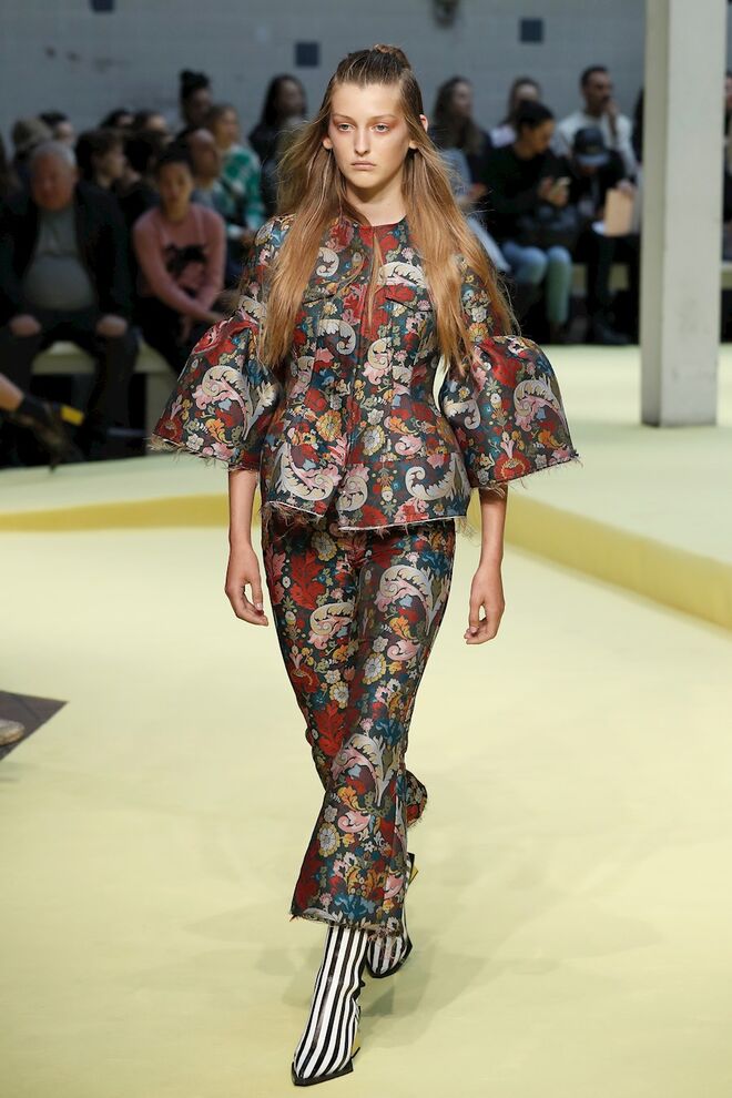 A próxima estação quente será, segundo Marques'Almeida, primaveril e divertida, com cor, muitos padrões, folhos e afins. As silhuetas oversized são uma tendência forte, com muitas partes de cima (em especial os casacos) largos e compridos. As mangas extra longas também marcam muitas peças, chegando a tapar por completo as mãos.