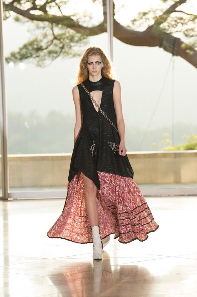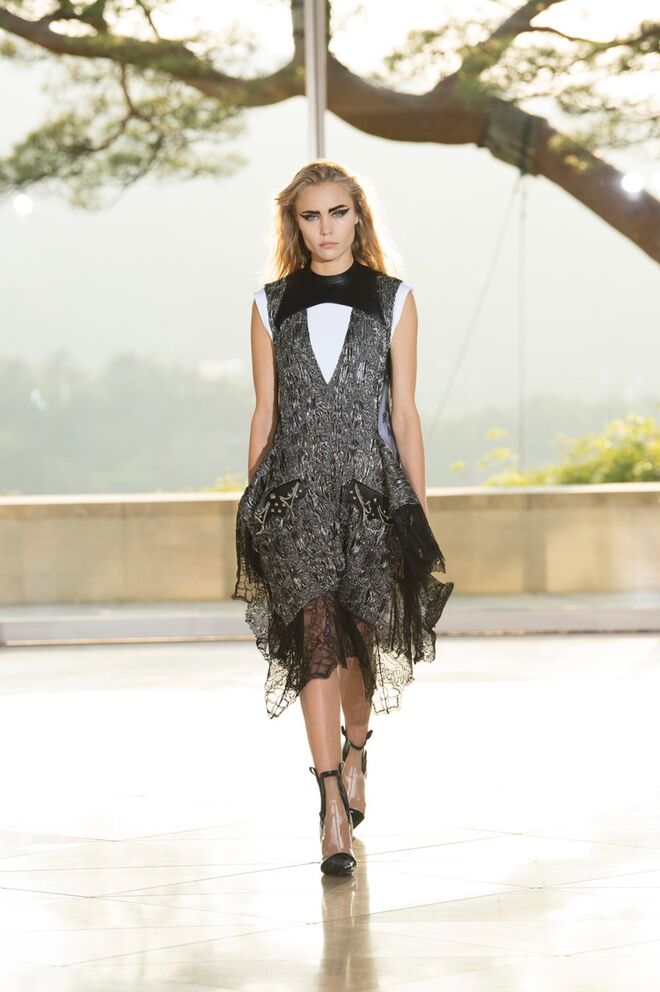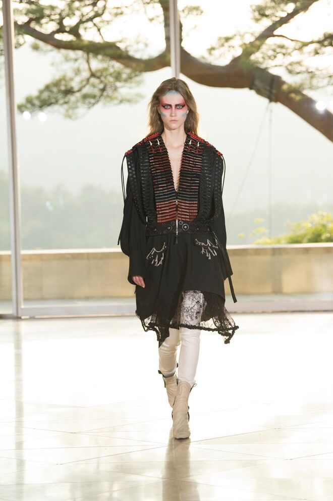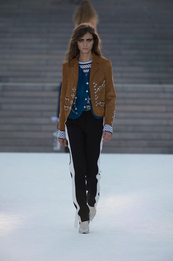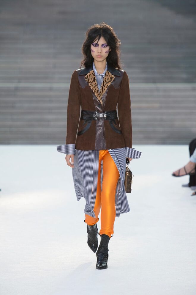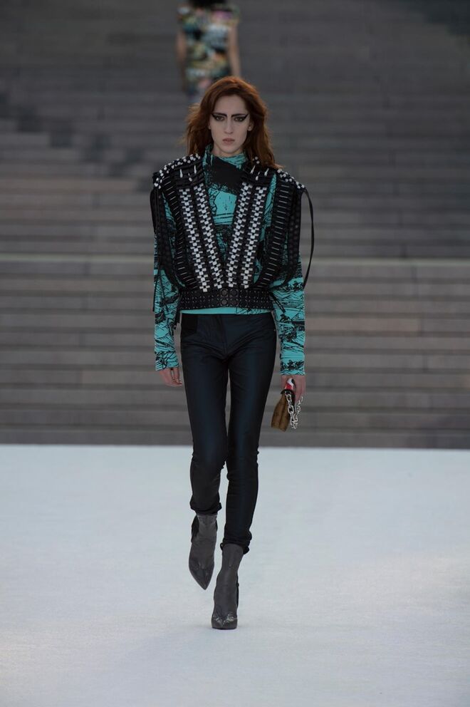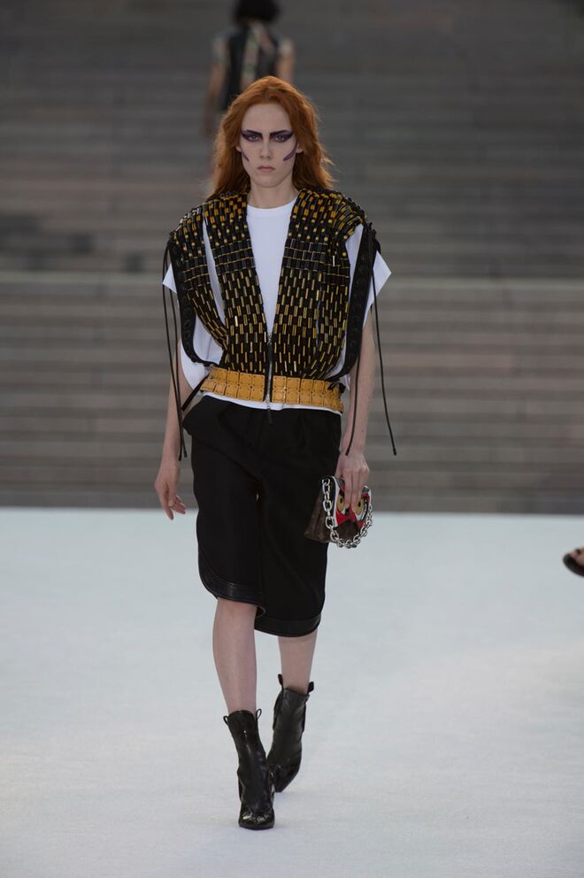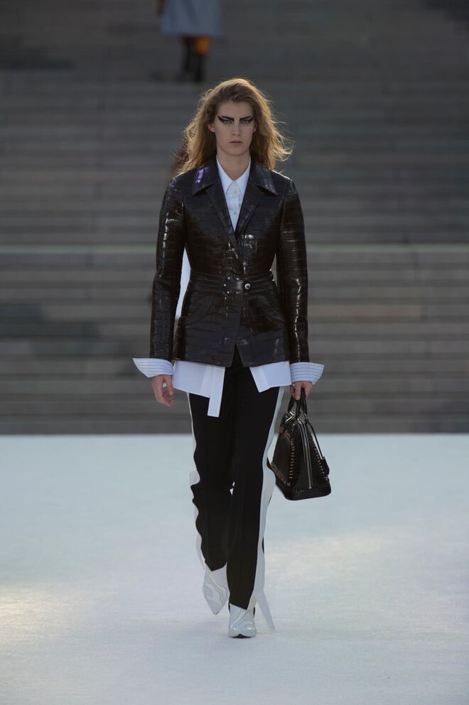 Nicholas Ghesquière (diretor criativo da marca) criou uma ponte entre o passado e o presente, juntando os cortes urbanos e futuristas aos materiais simples e naturais.